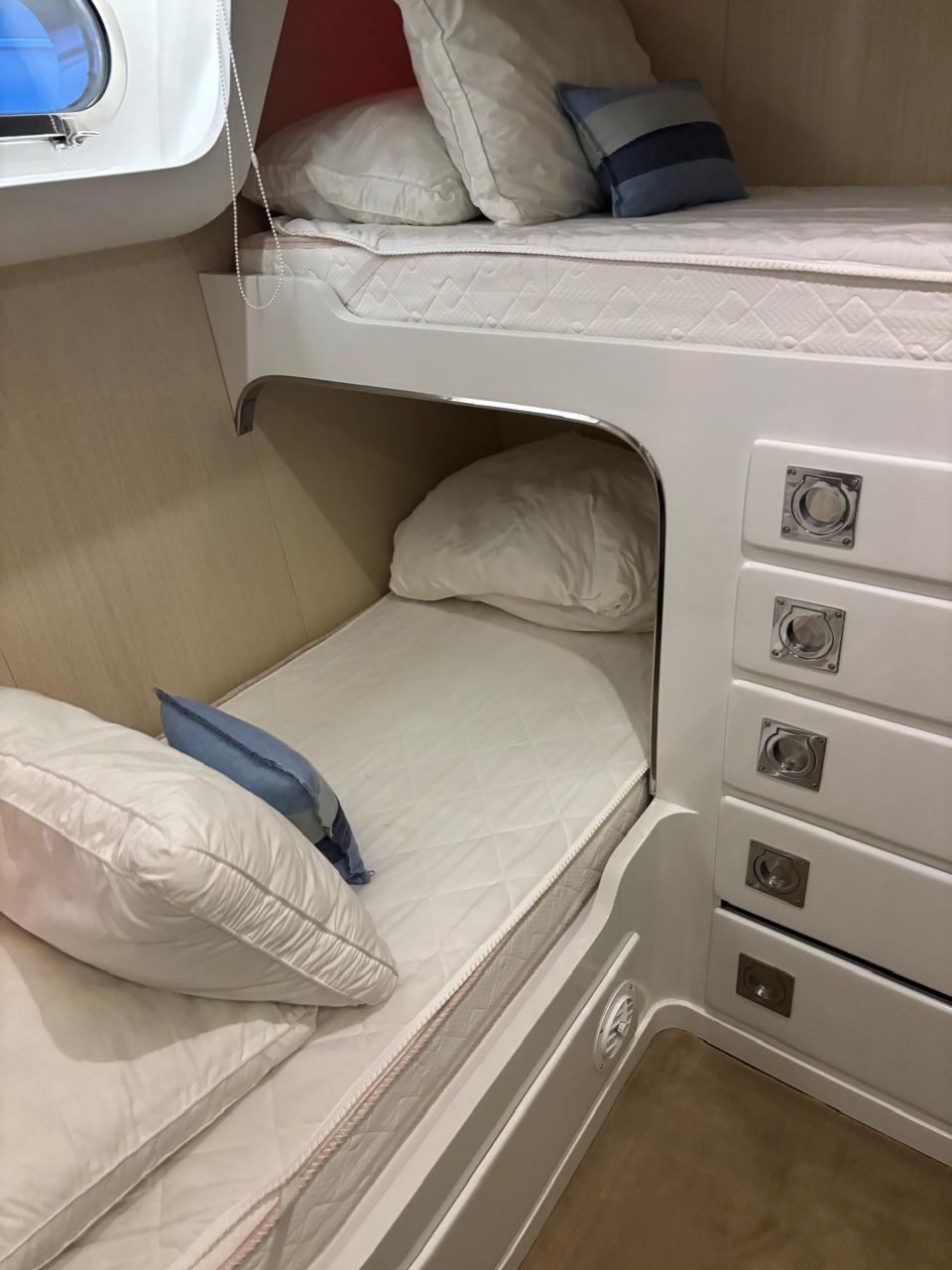 La embarcación cuenta con 5 camarotes, incluyendo el camarote de marineros con su baño propio.