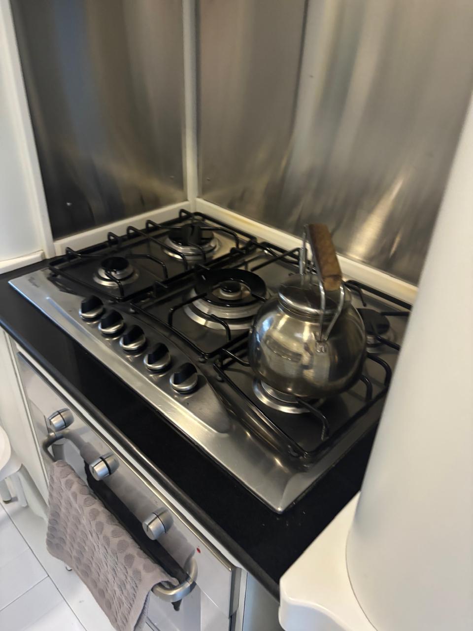 Cocina completa equipada con heladera, anafe a gas, horno eléctrico y microondas.