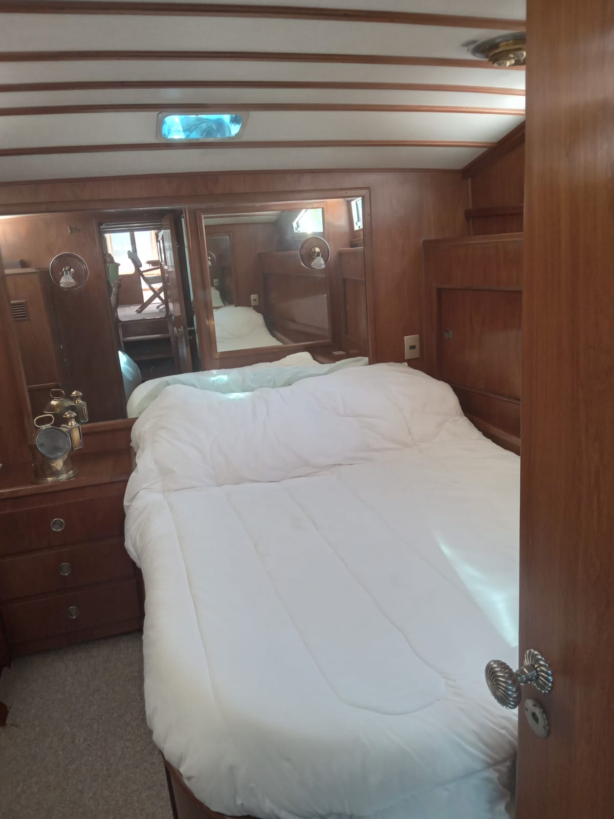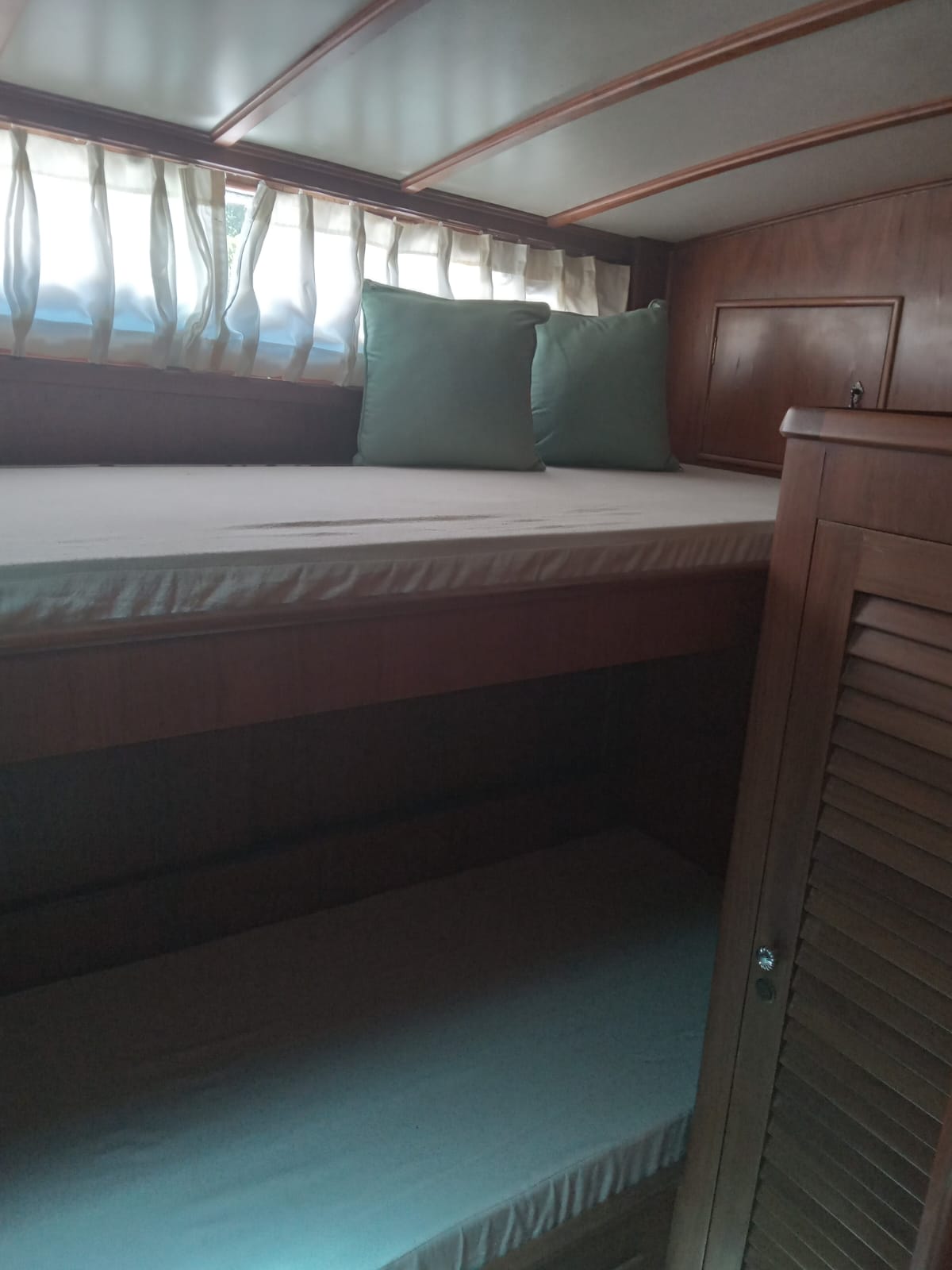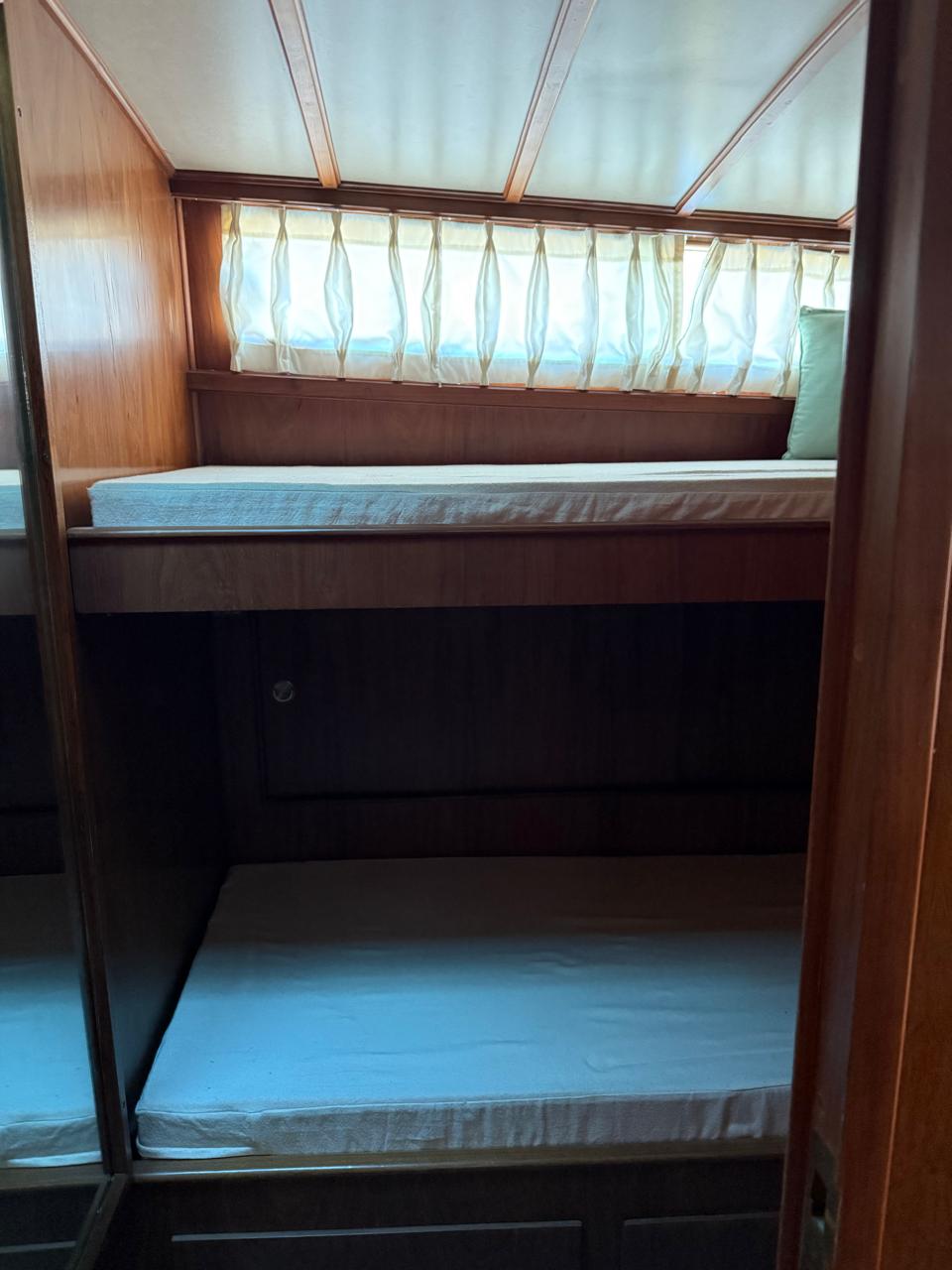 Dos camarotes: uno con cama doble y otro con dos camas superpuestas.