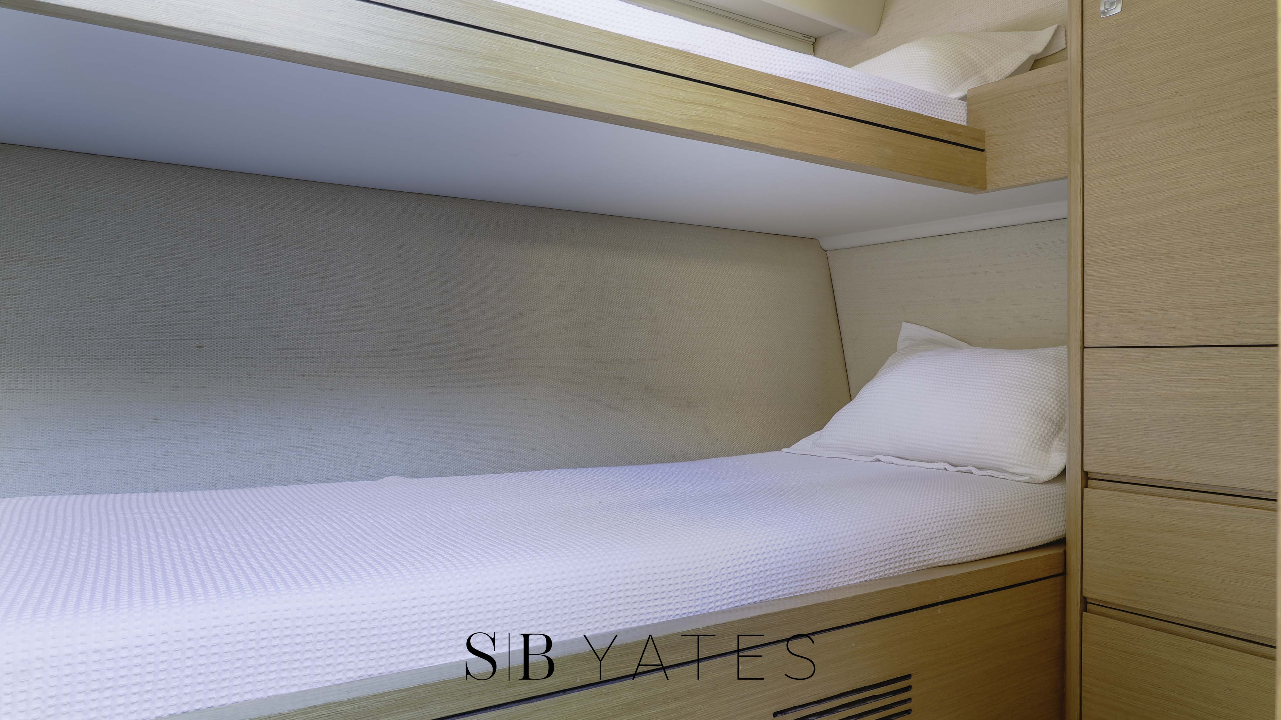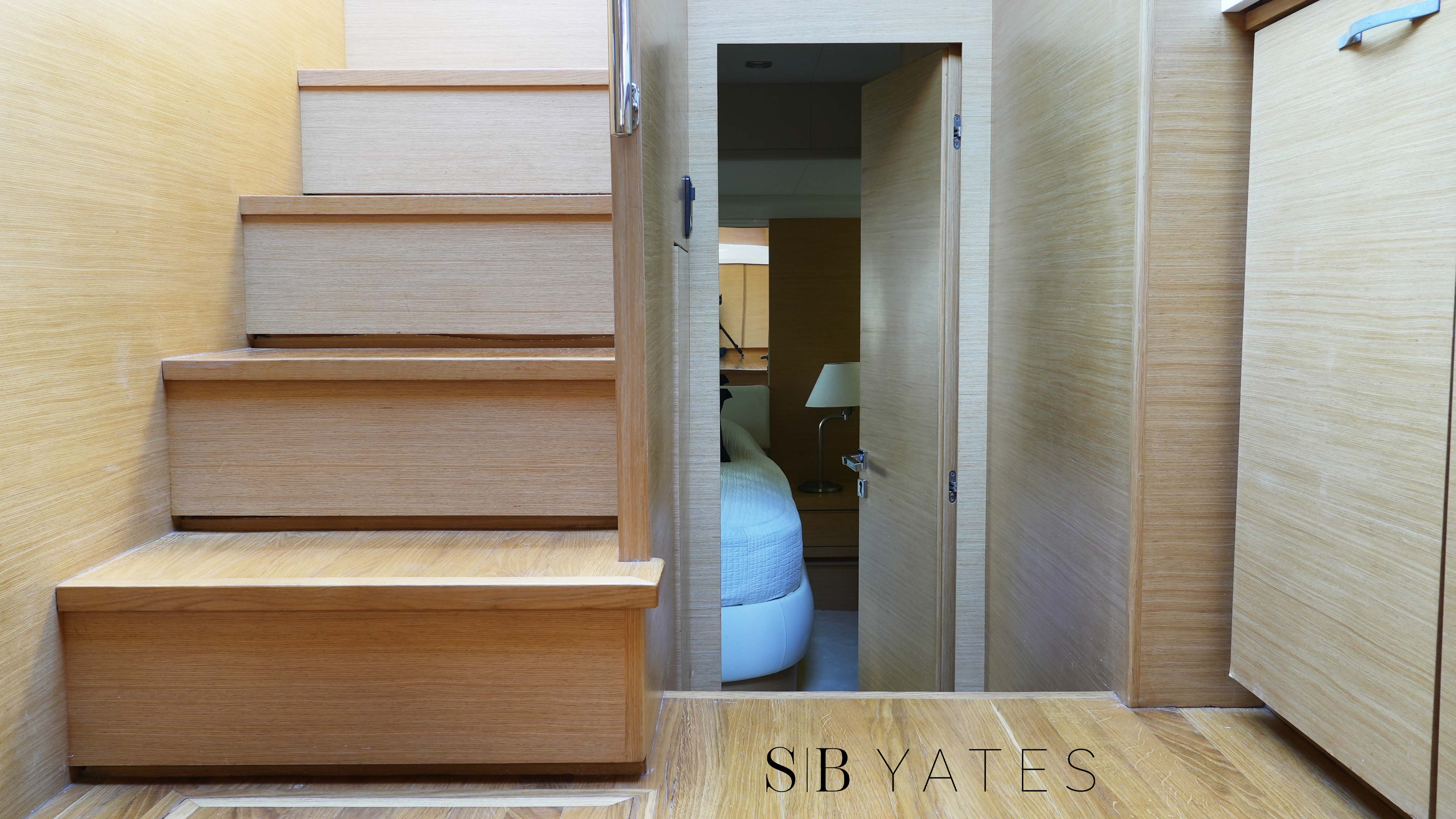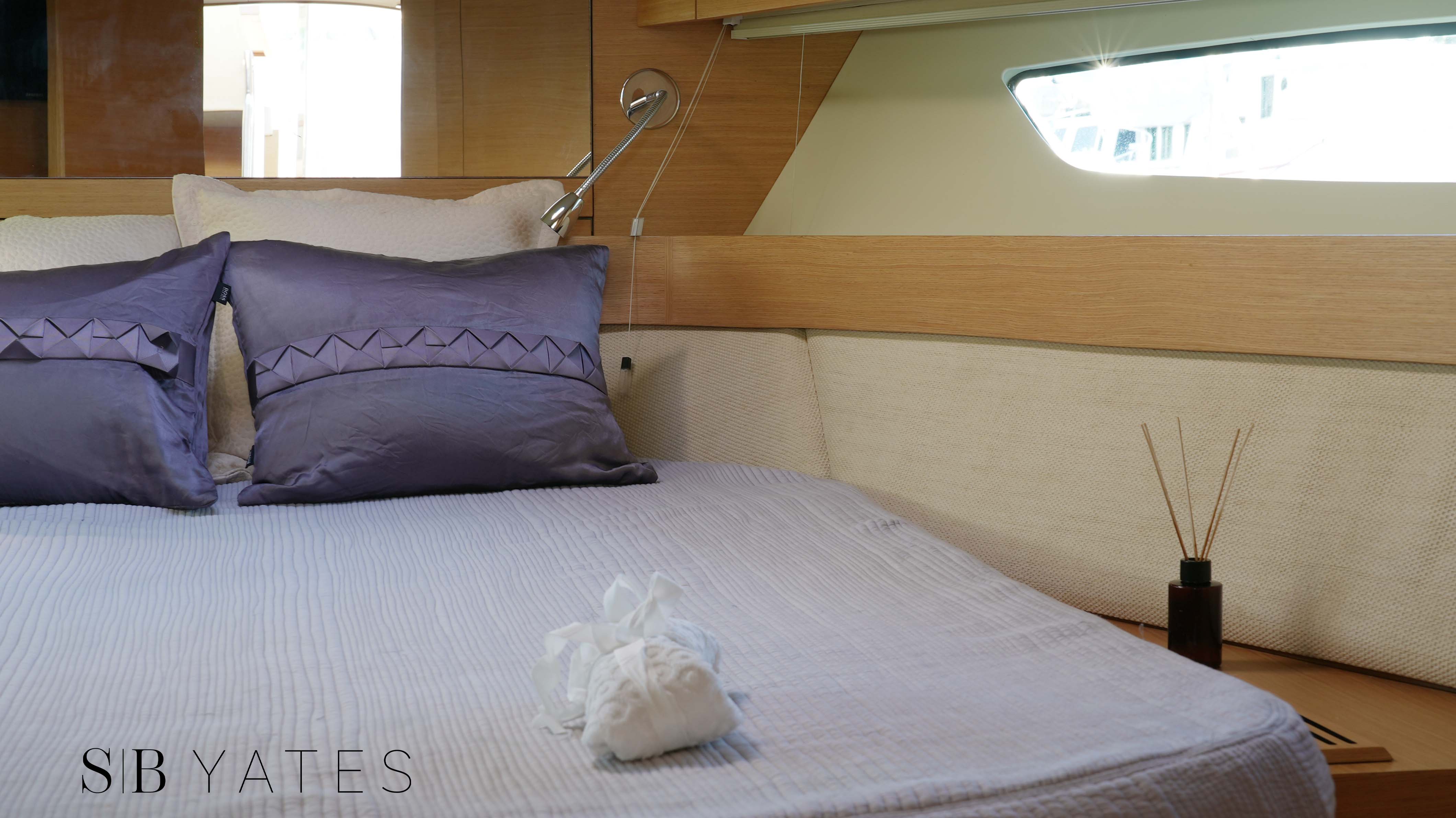 Camarote principal: ubicado a popa, con cama matrimonial, baño en suite y TV.
