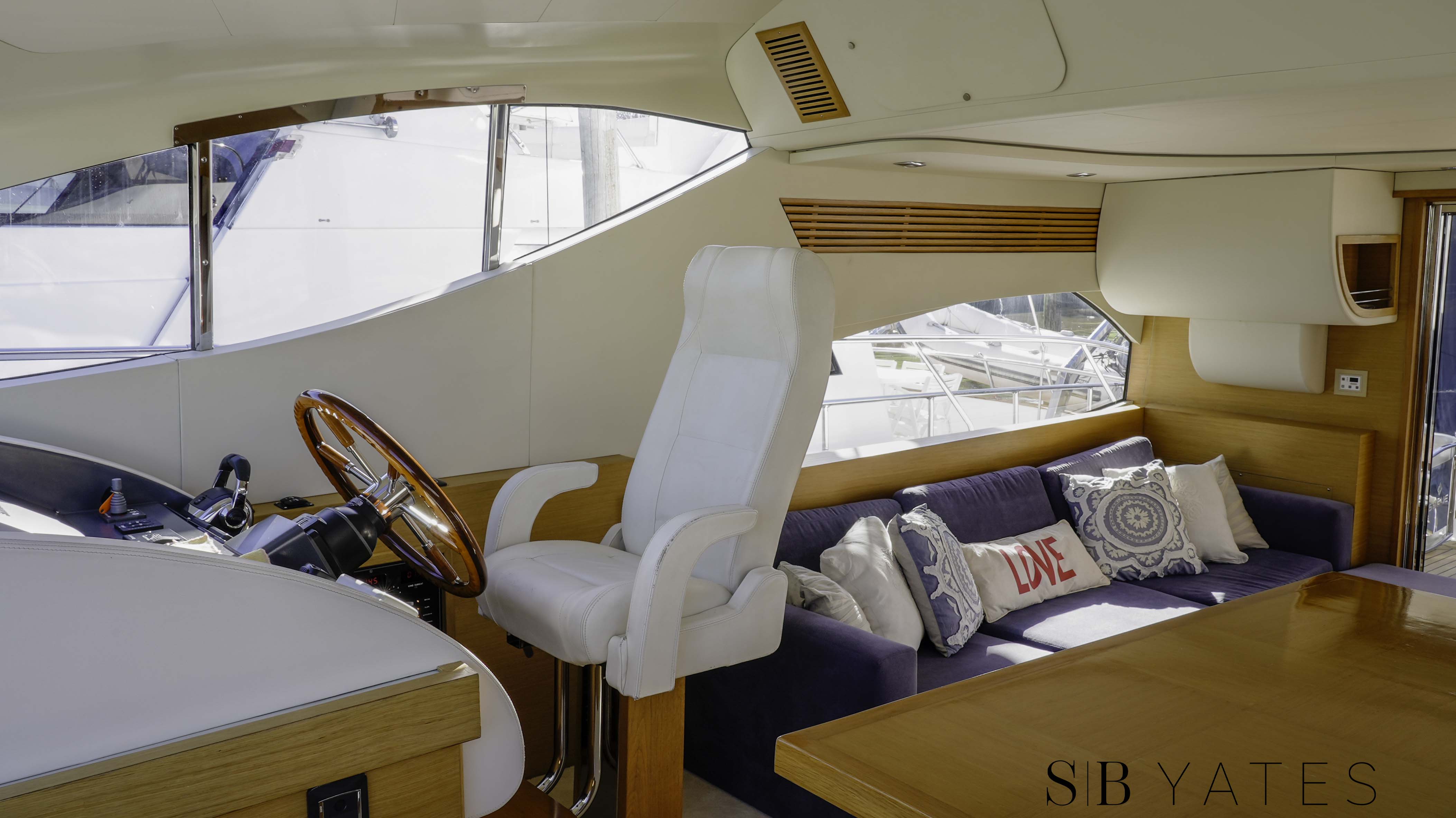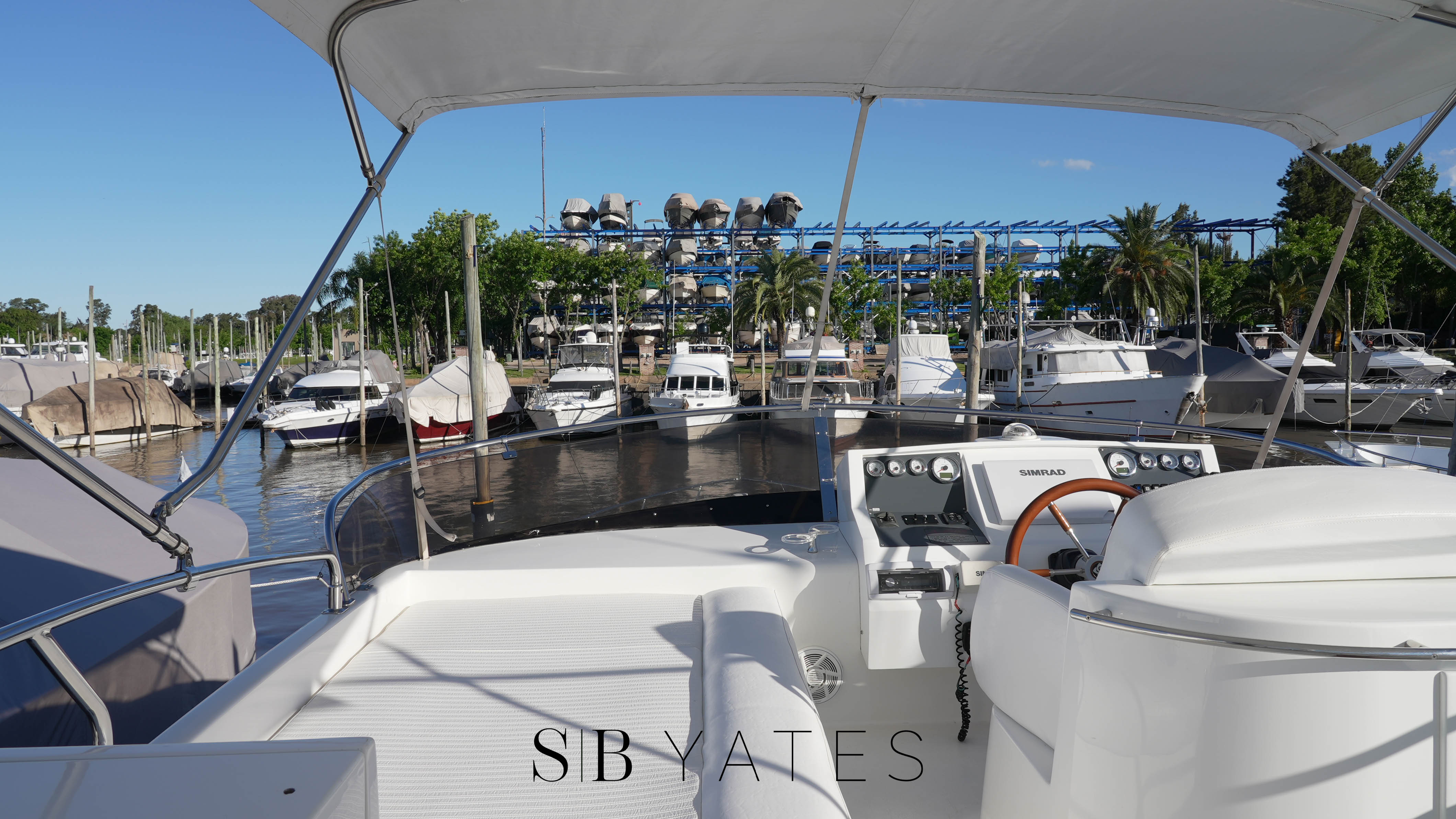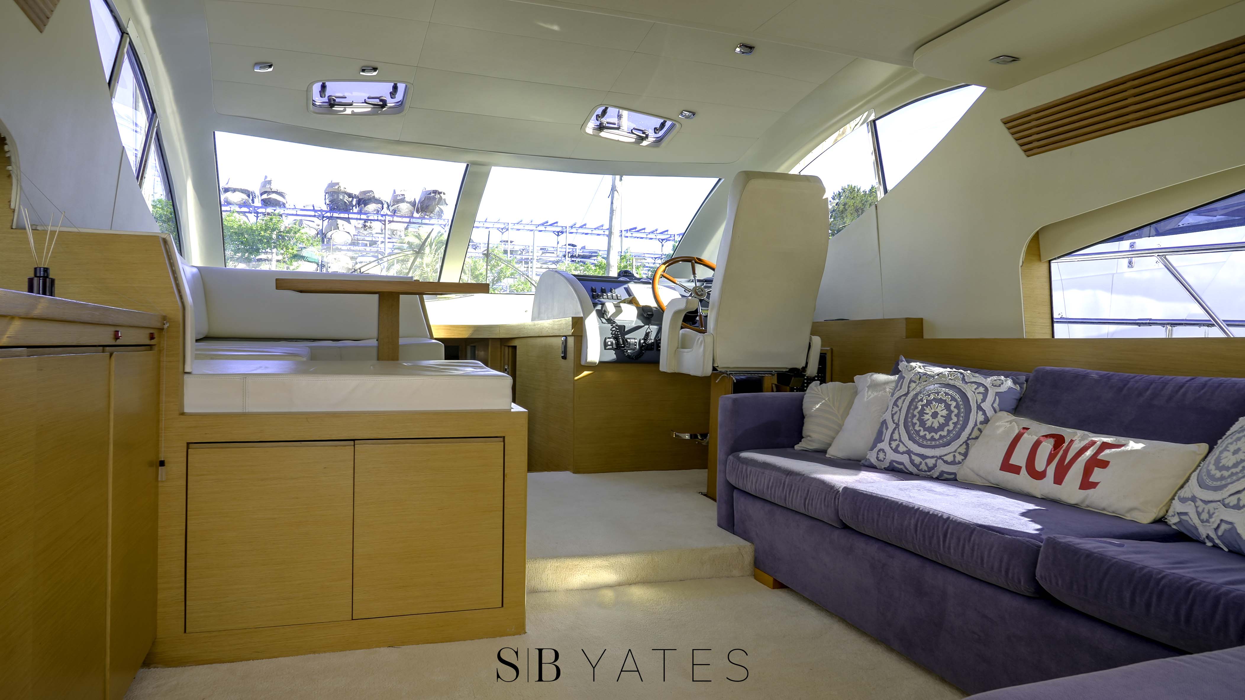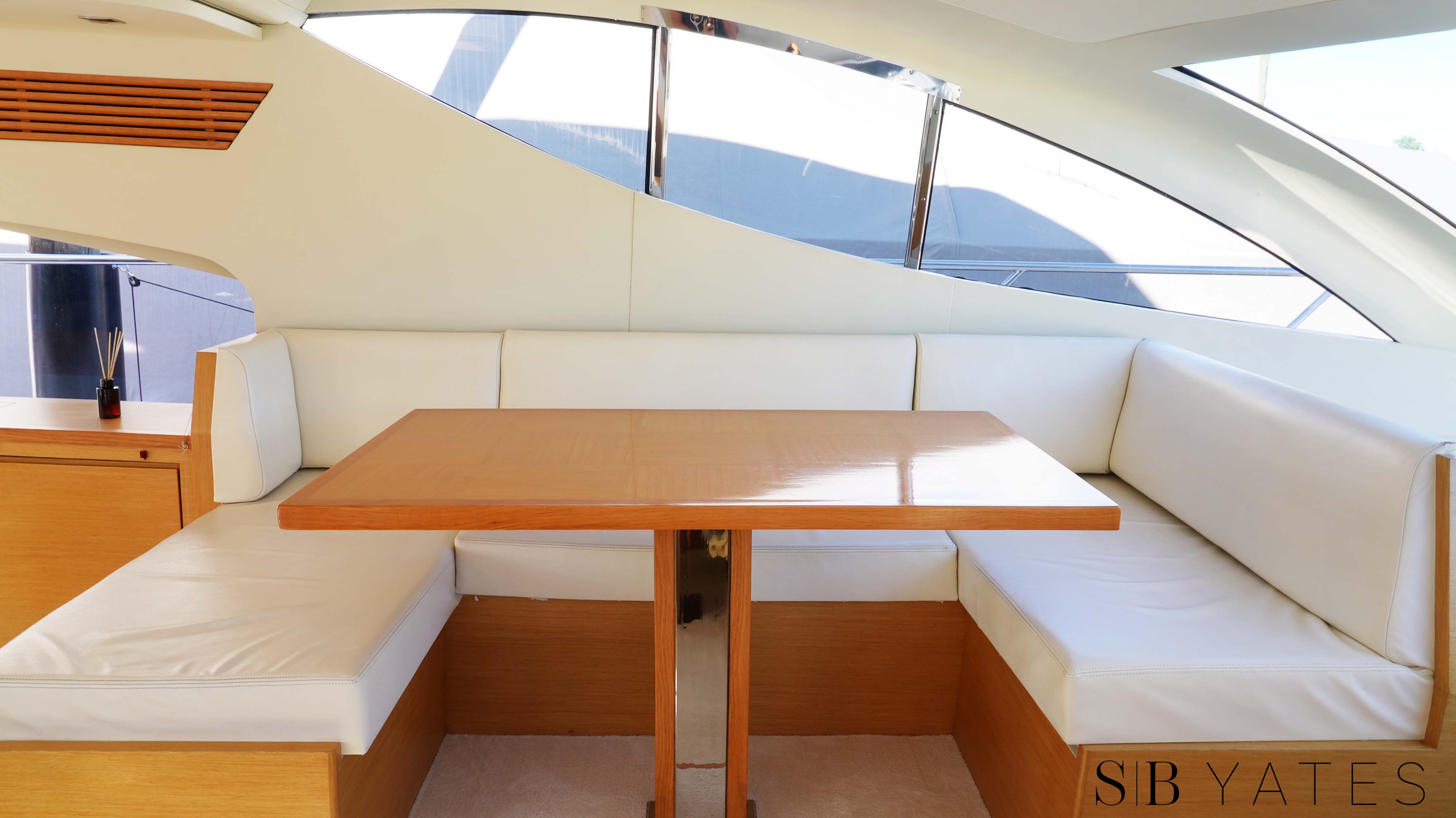 En la cubierta Flybridge dispone de un cómodo sillón en “U”, mesa, solárium y segundo puesto de mando.