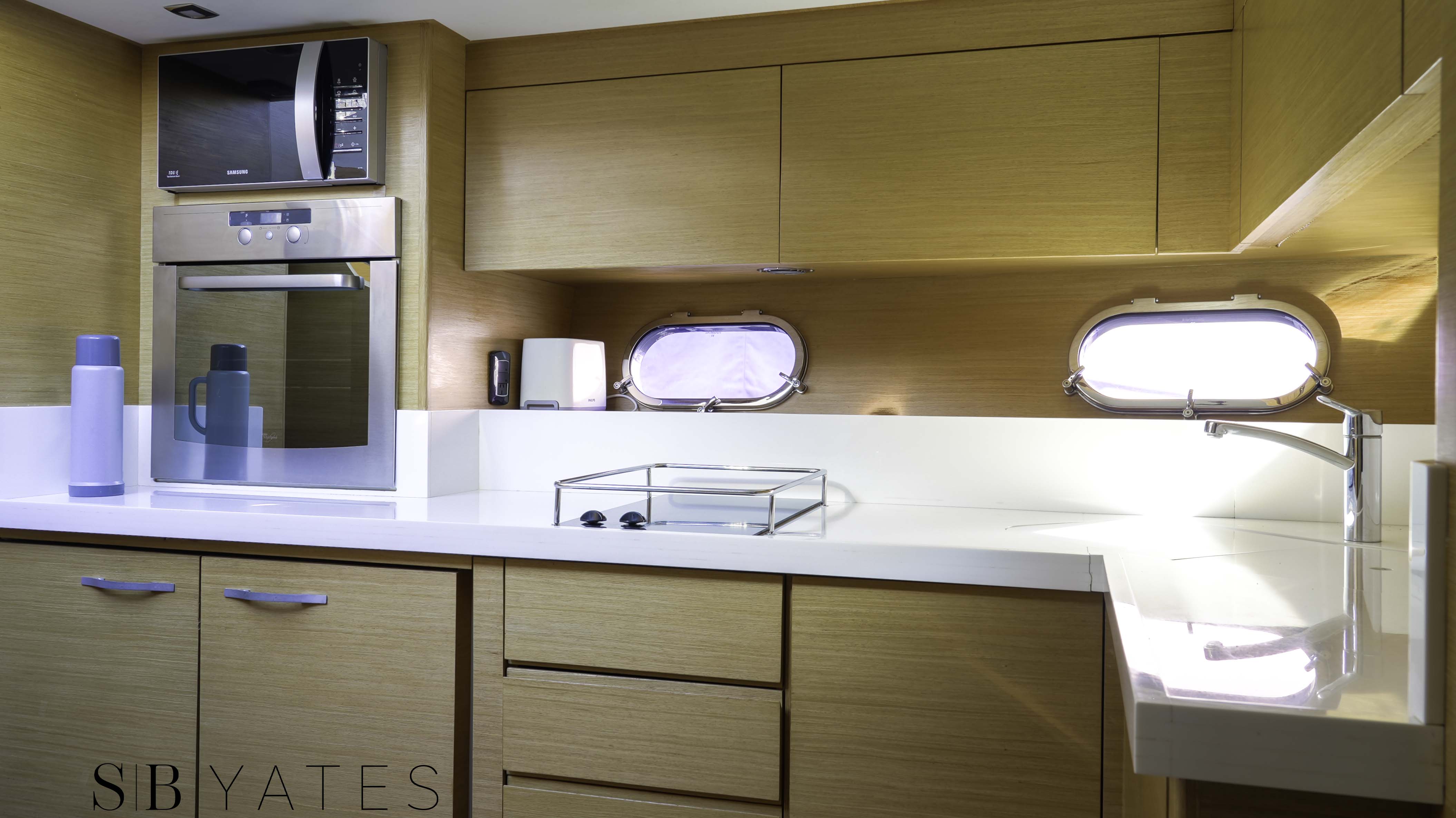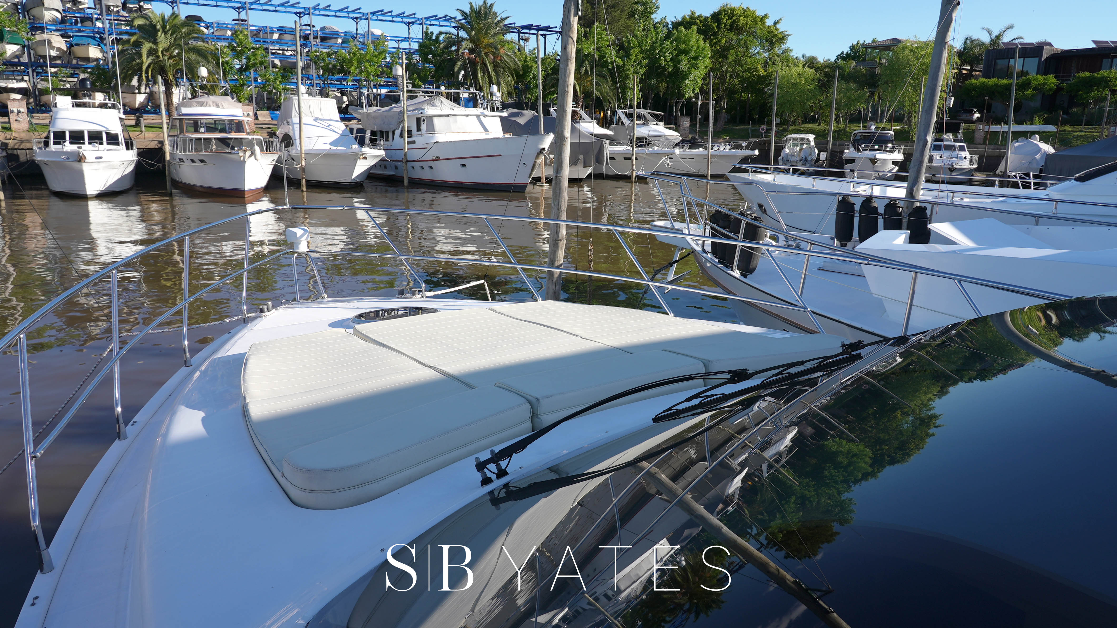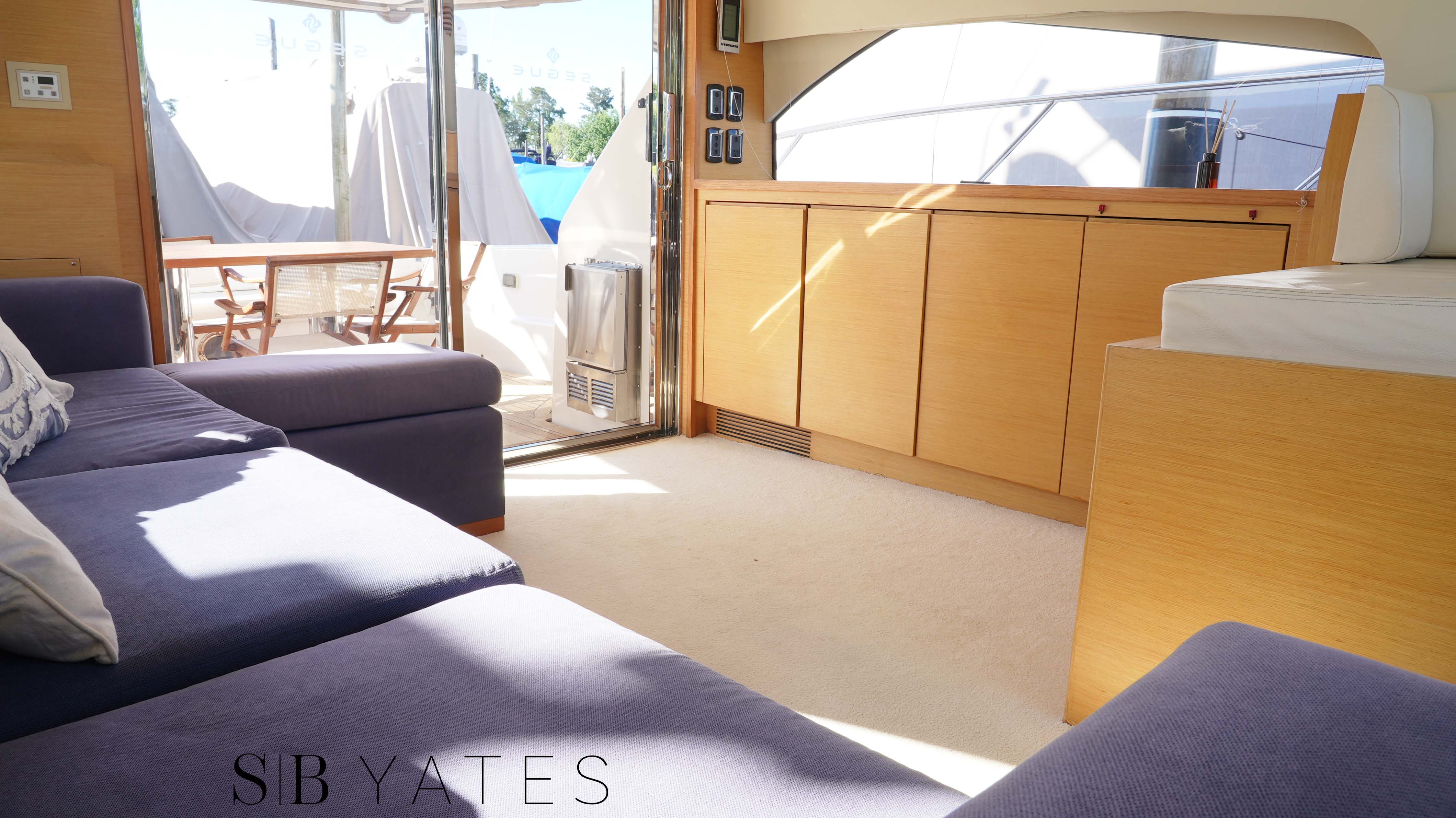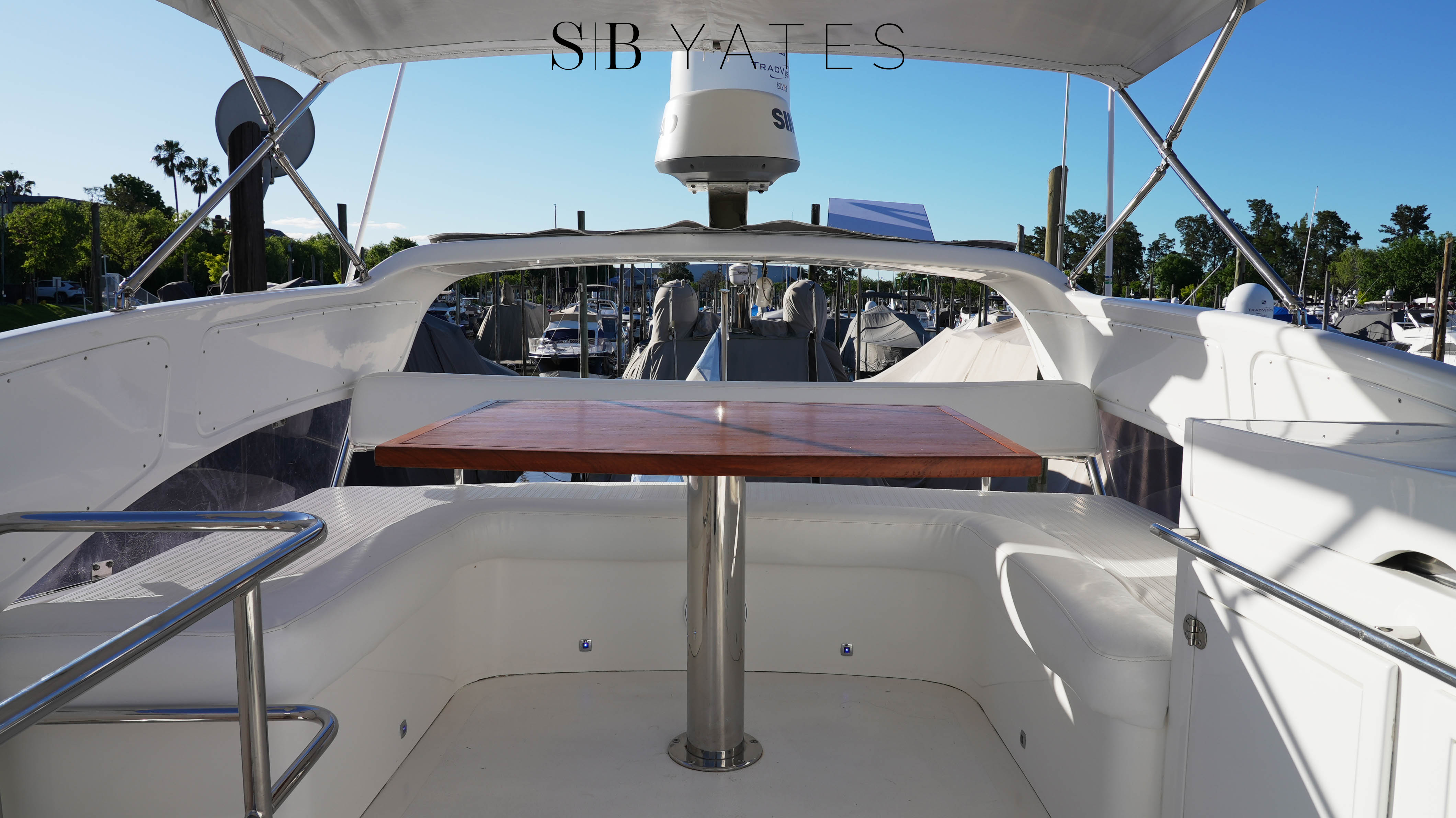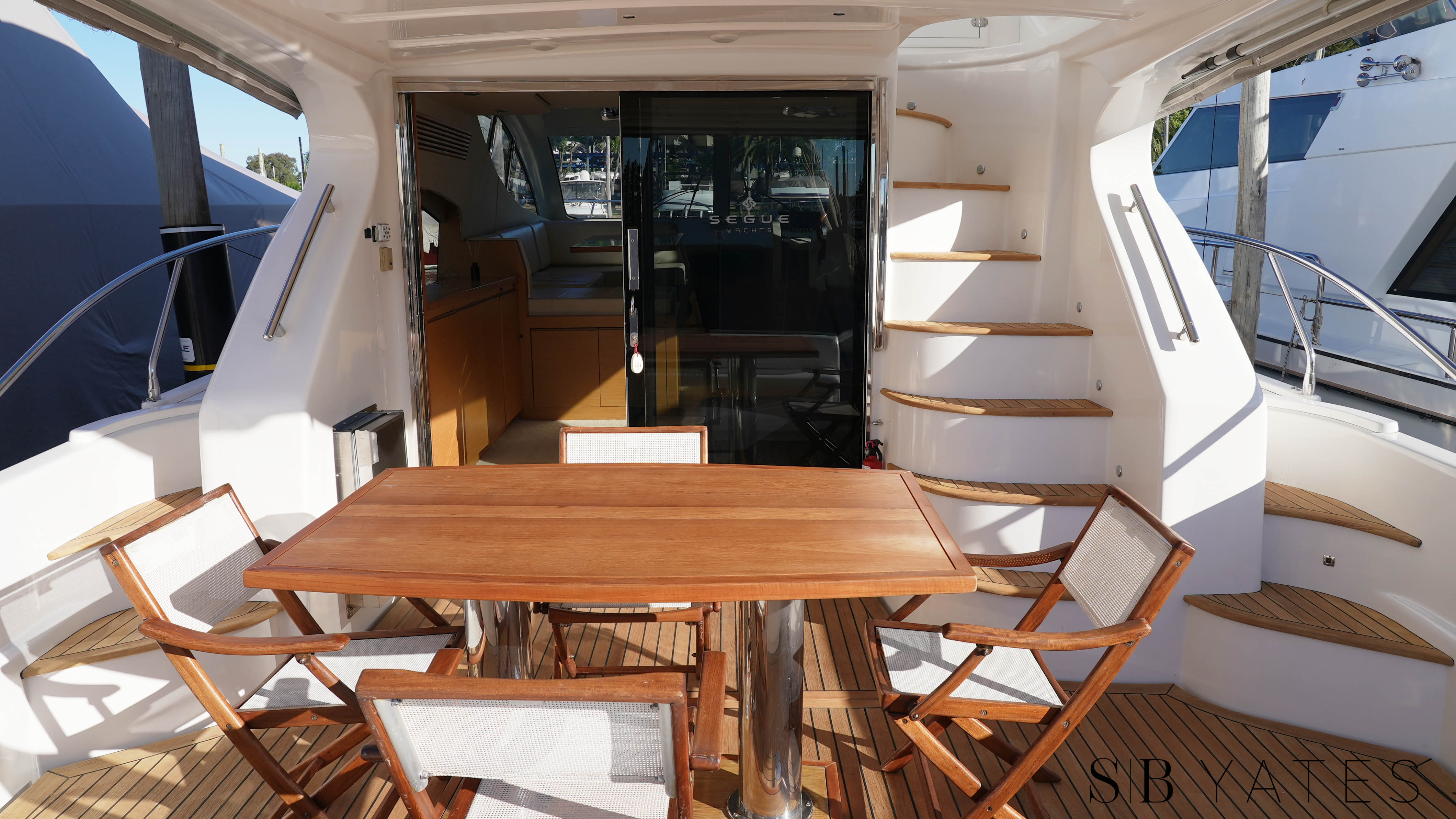 En la cubierta Flybridge dispone de un cómodo sillón en “U”, mesa, solárium y segundo puesto de mando.