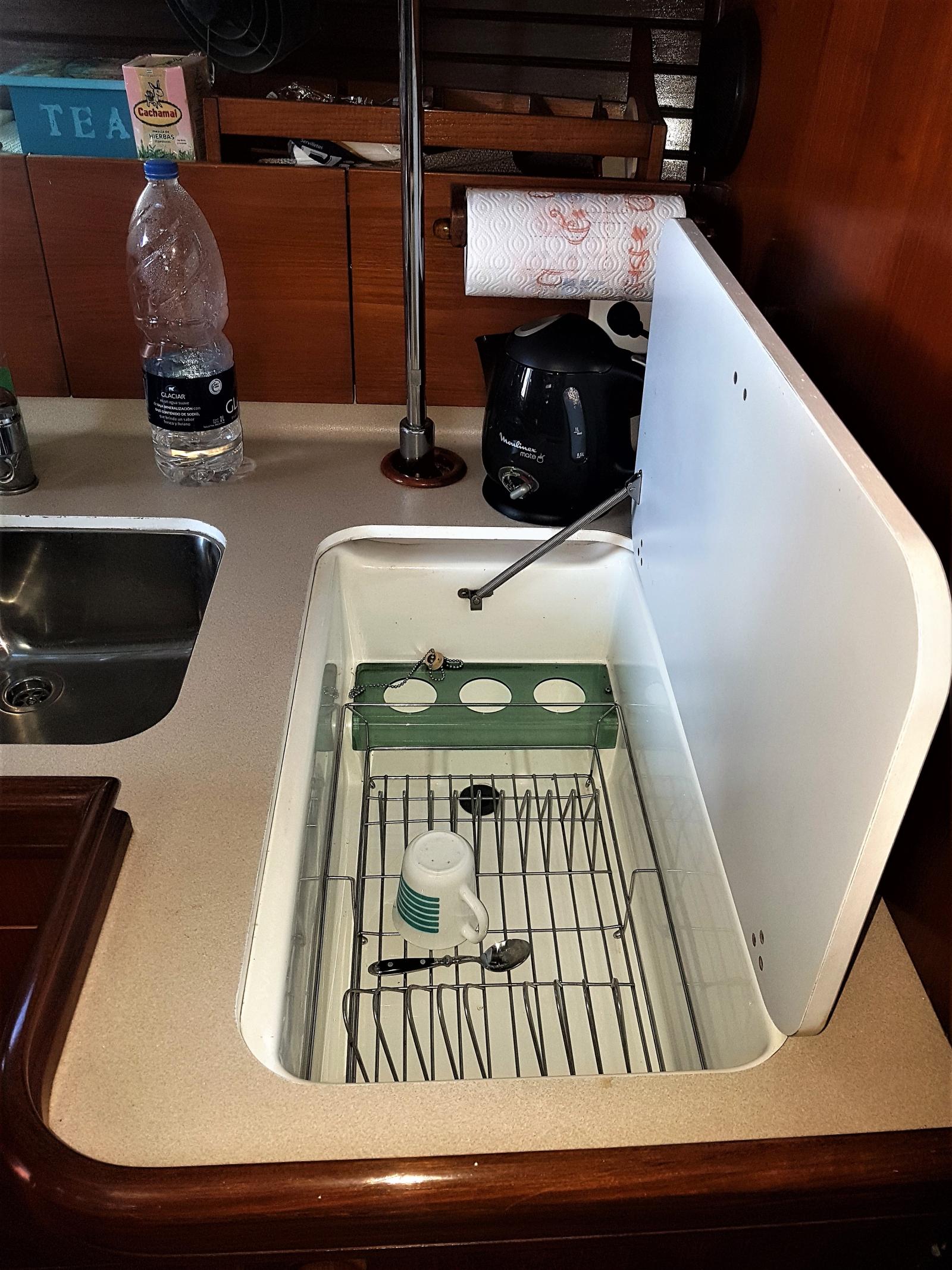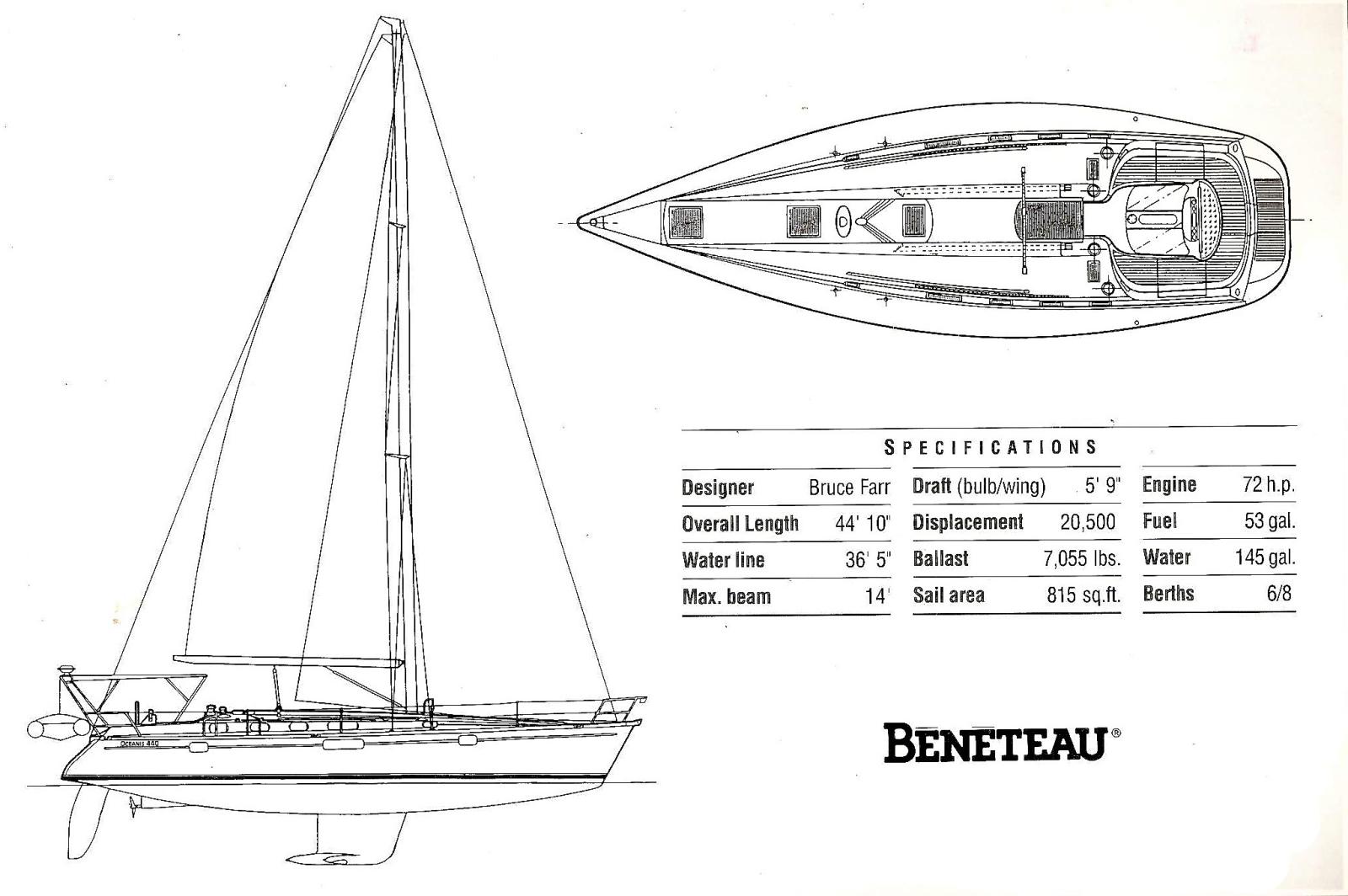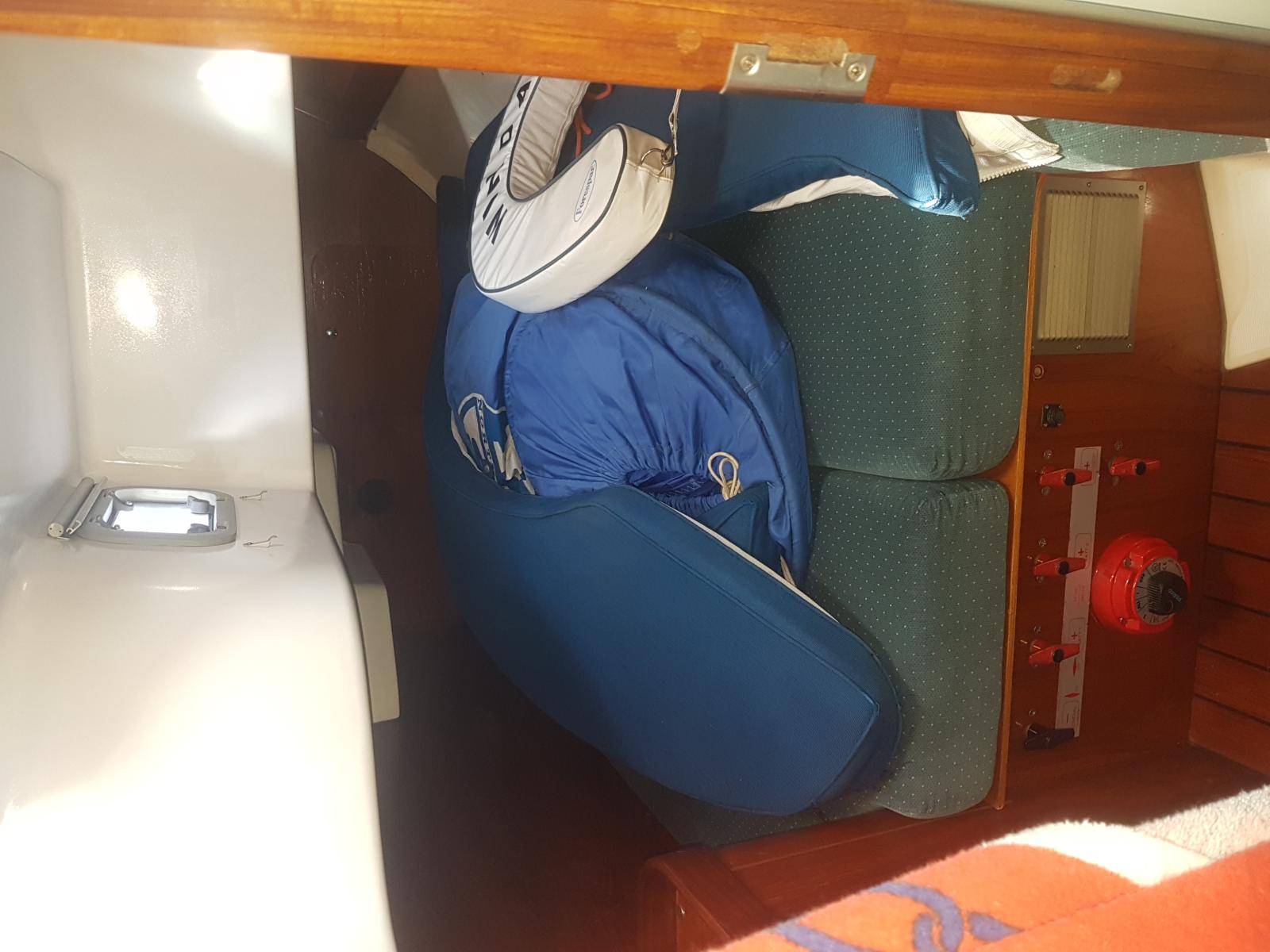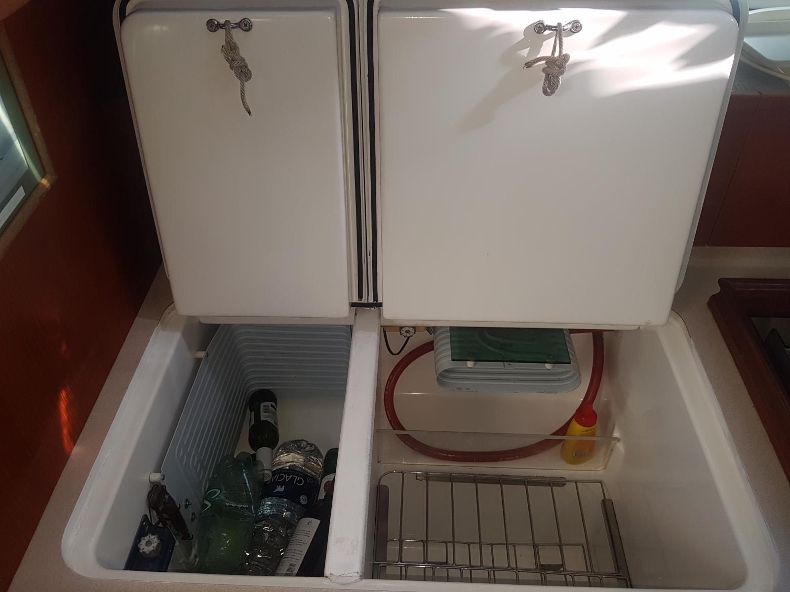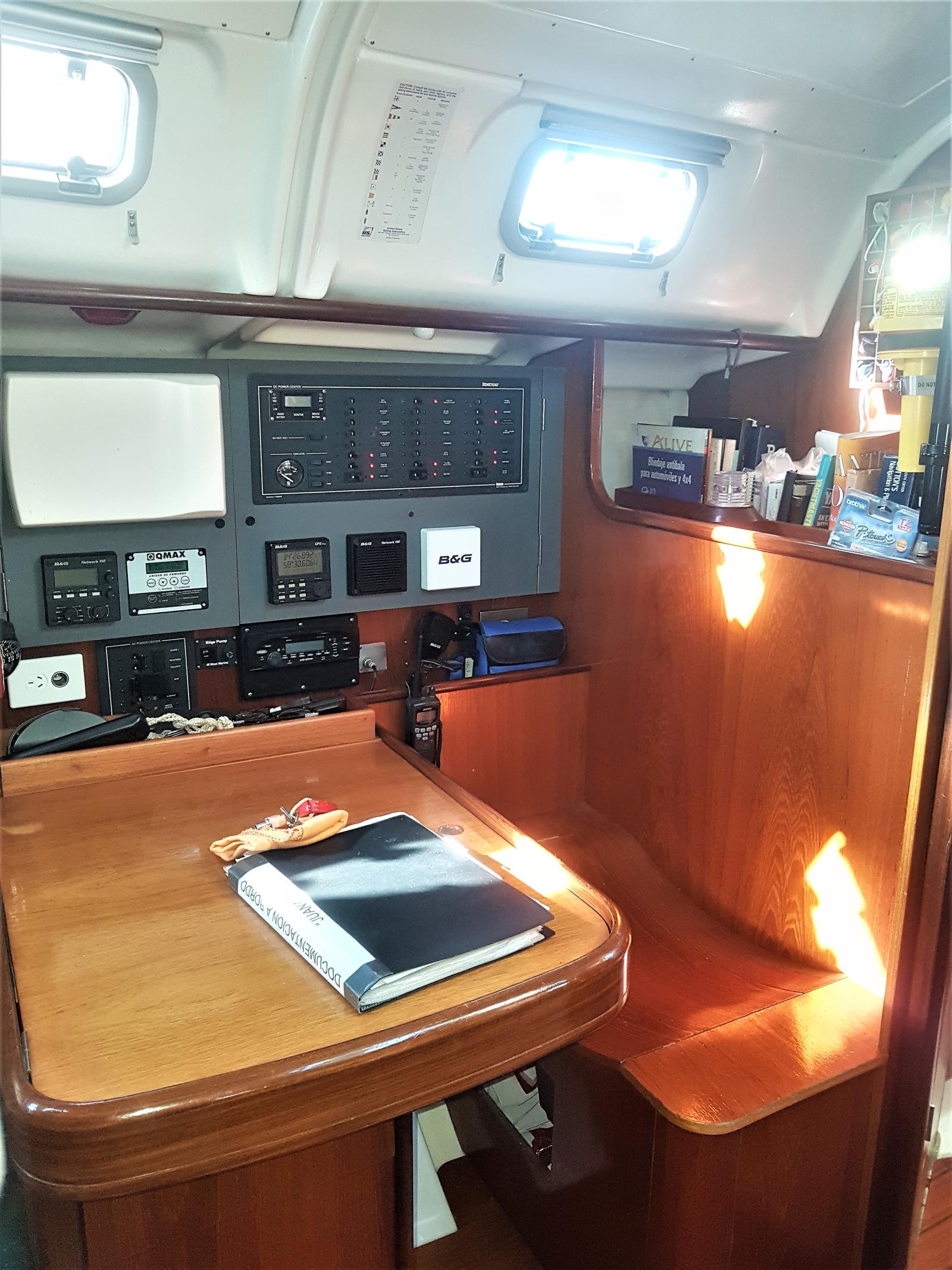 Camarote a proa con baño, dos camarotes a popa con un baño, amplia dinet en salón con mesada con pileta y cocina enfrentada, mesa de navegación. Amplio cockpit con mesa integrada y plataforma de baño.