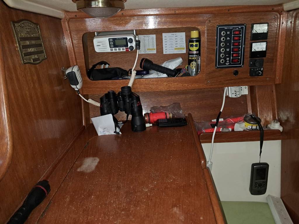 ELECTRÓNICA:Compás Danforth - VHF – Tridata Raymarine – Anemometro Raymarine – Piloto automático Raymarine ST2000 – Instalación 220 – Bombas de achique eléctricas -