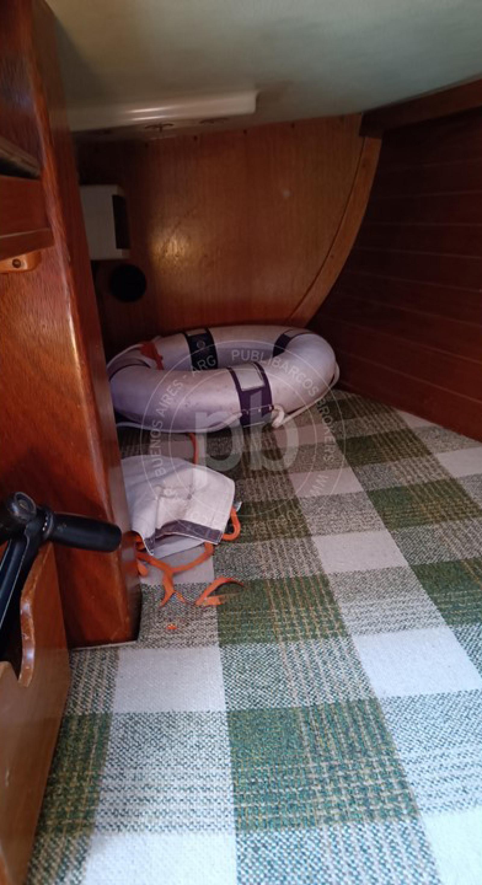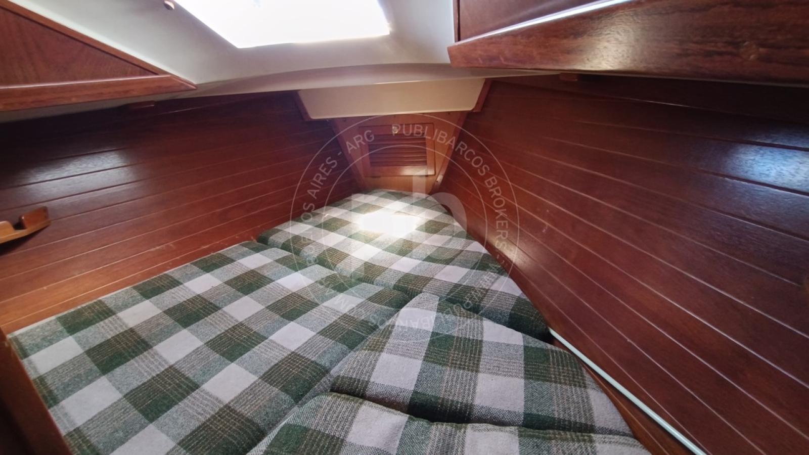 Camarote de proa con altura de 1.80 m desde el piso a cubierta muy cómodo. enchapado sin signos de filtraciones. Placard en proa.