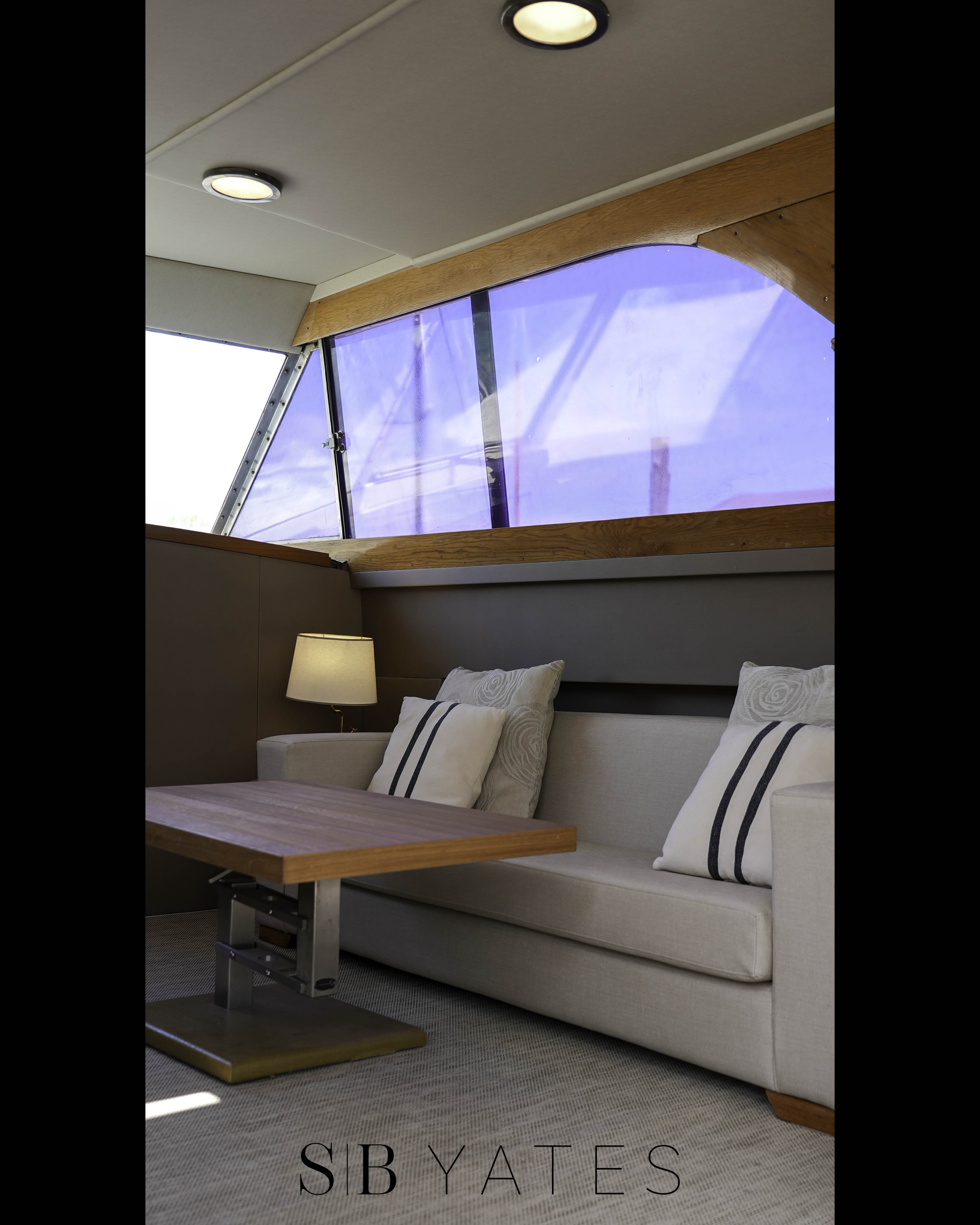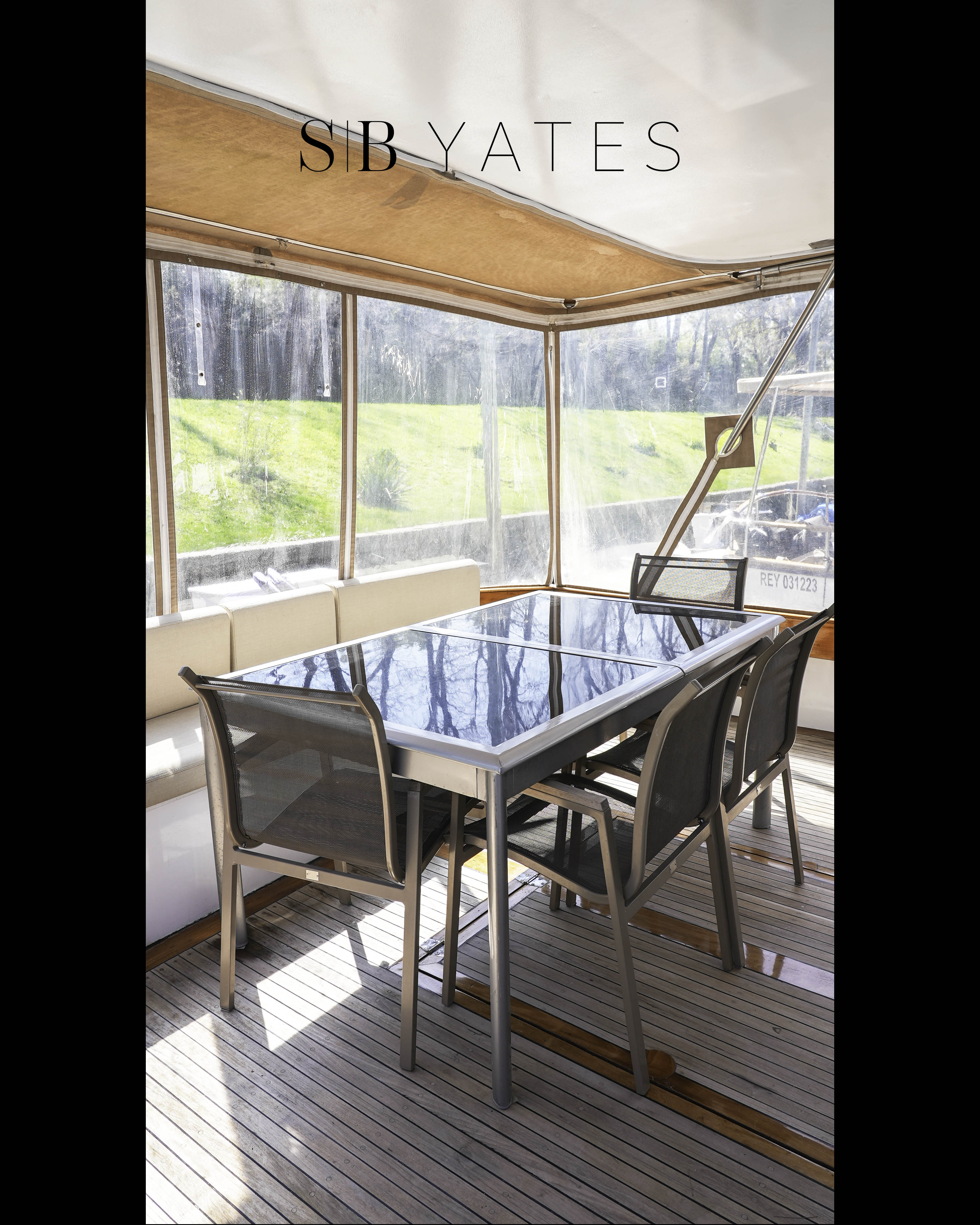 Espacios comunes: amplios y cómodos en living, cockpit y flybridge