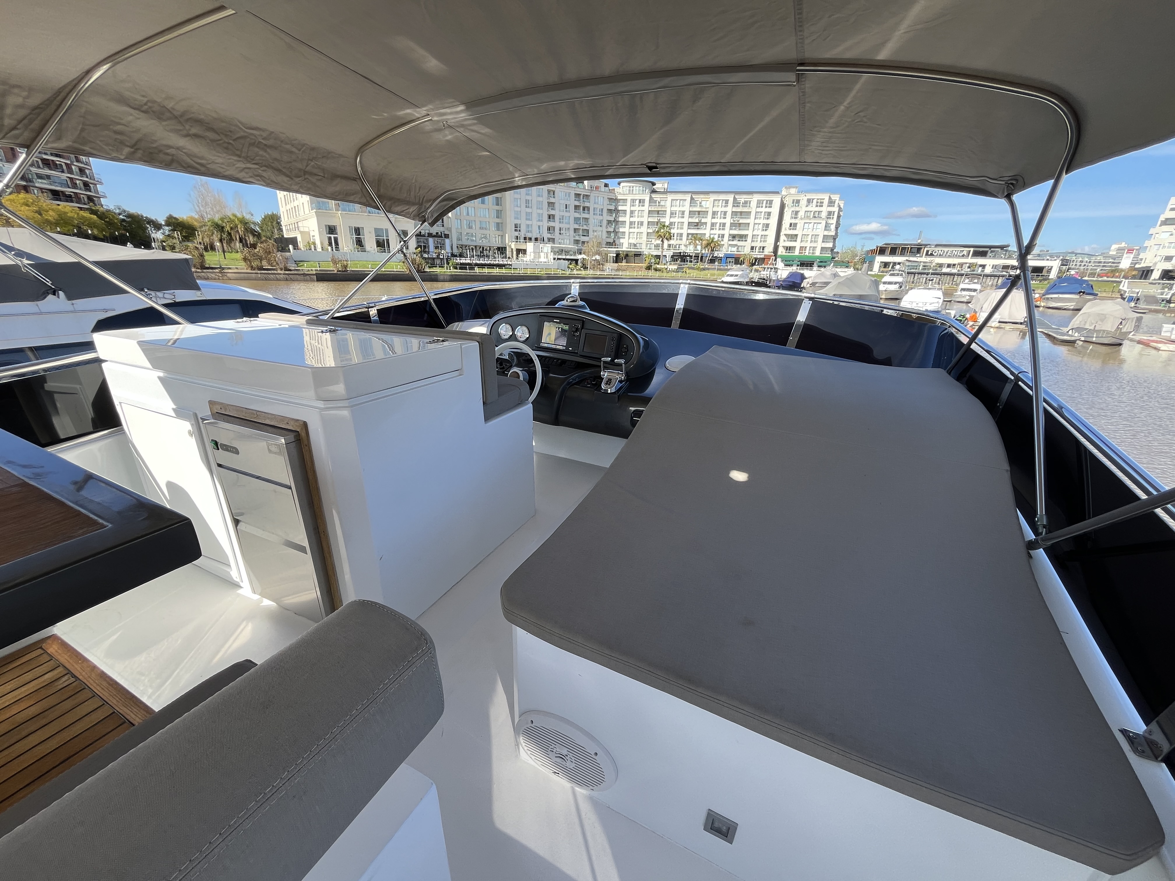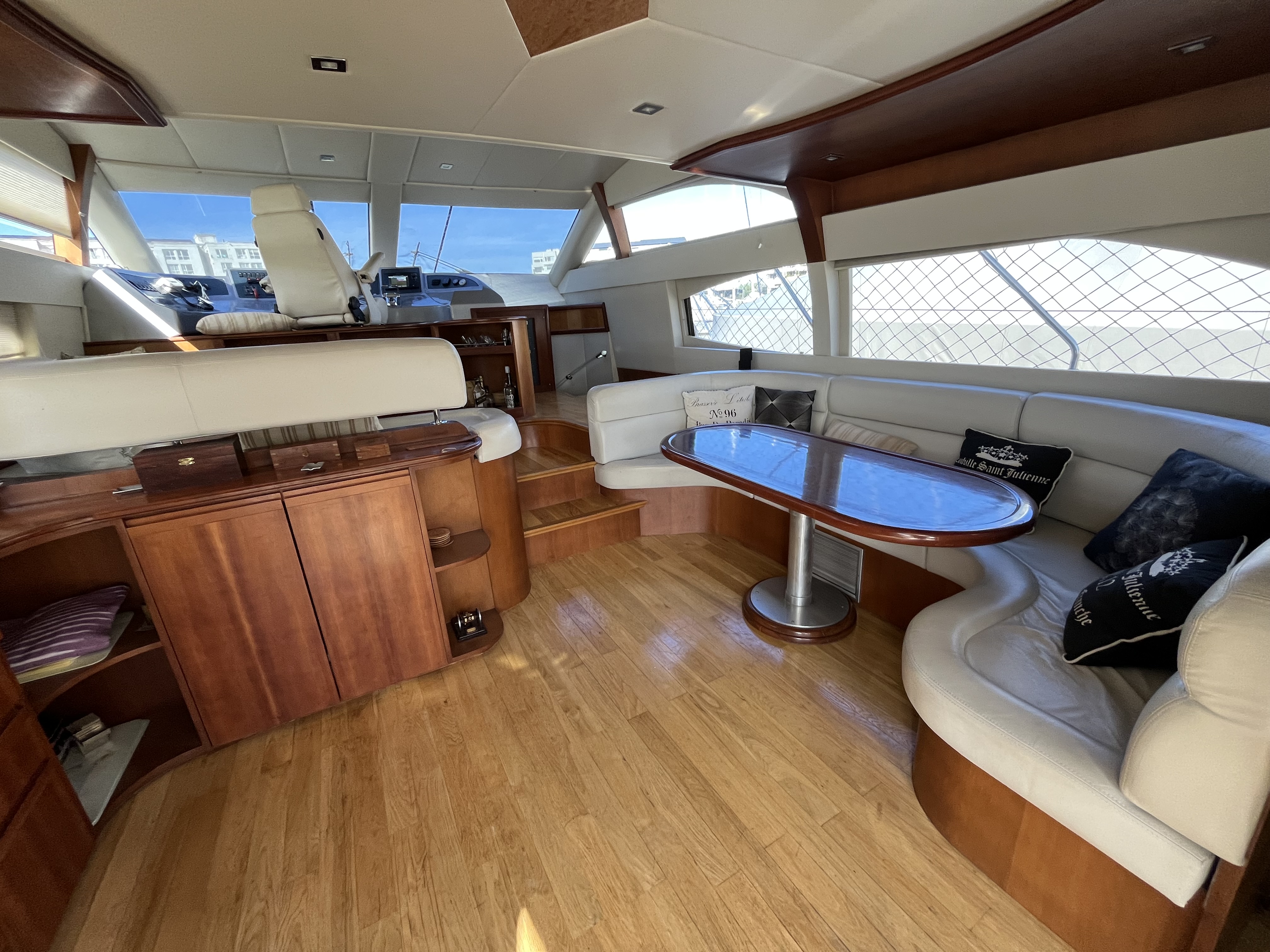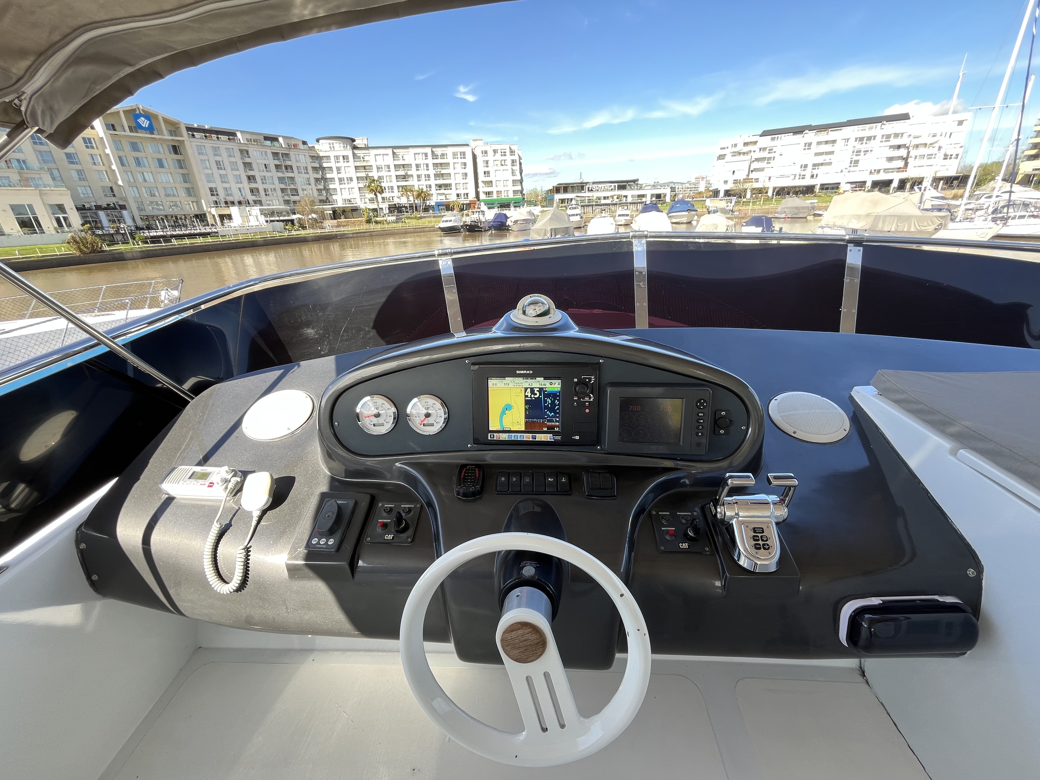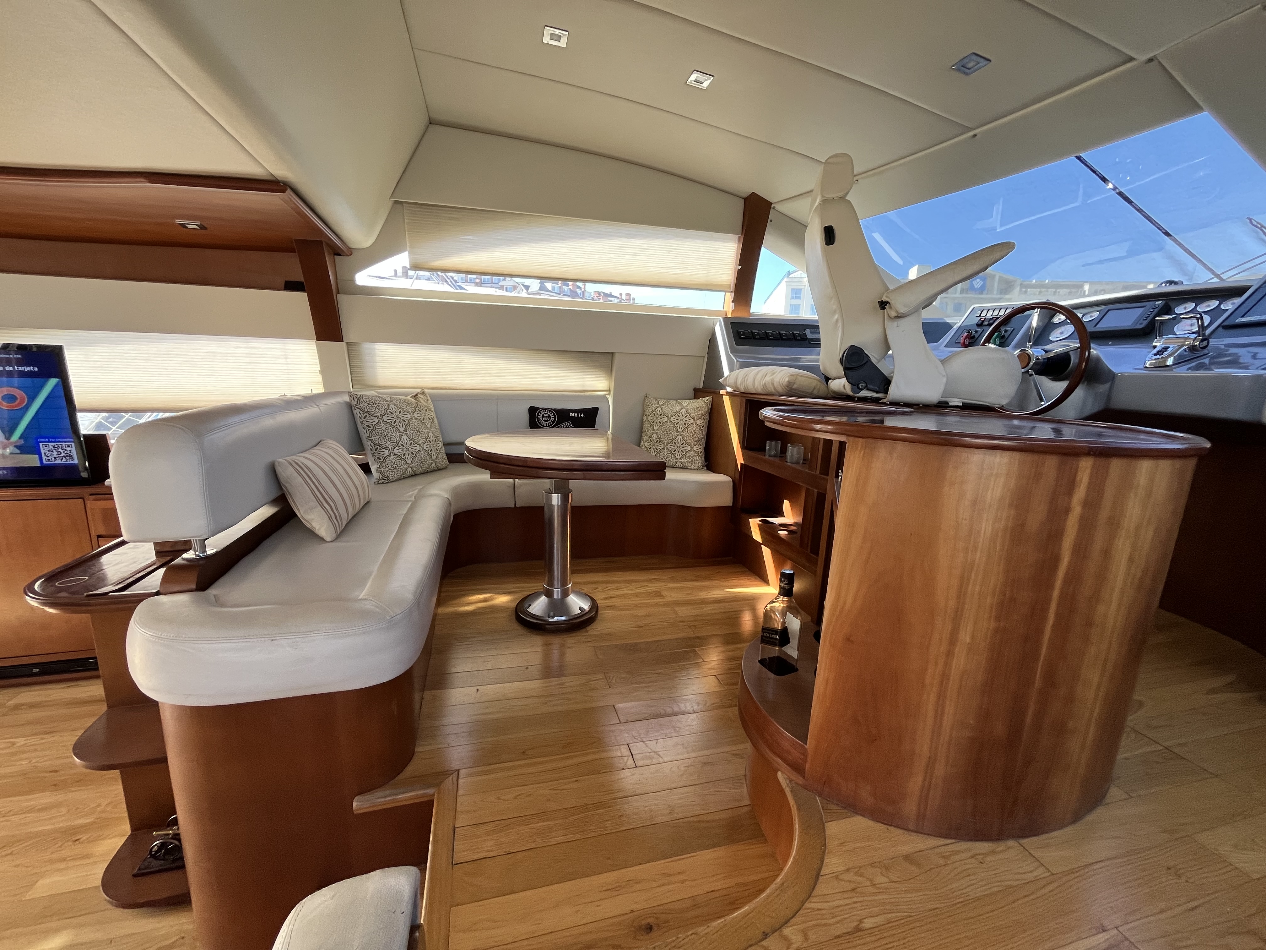 Cómodo cockpit con amplia área de asientos y acceso al flybridge.