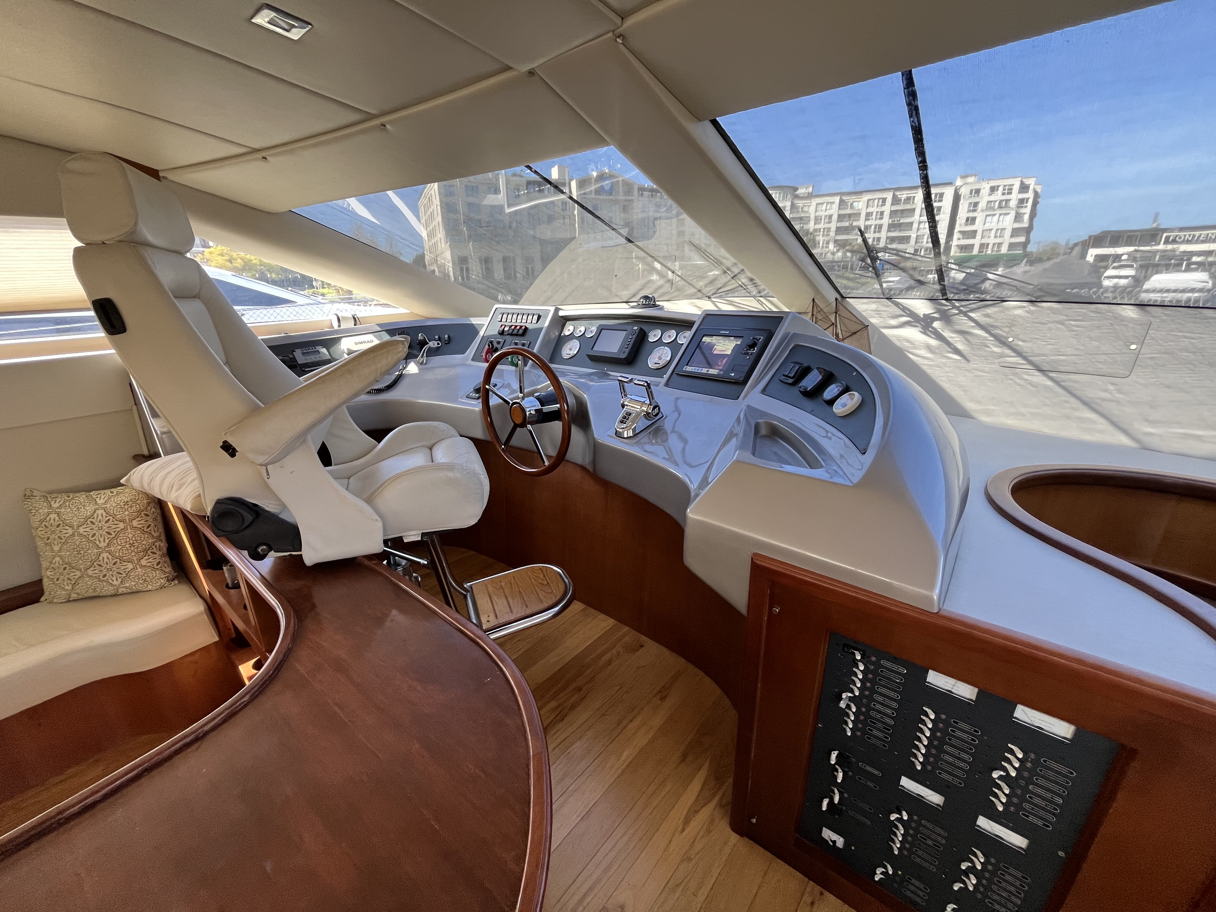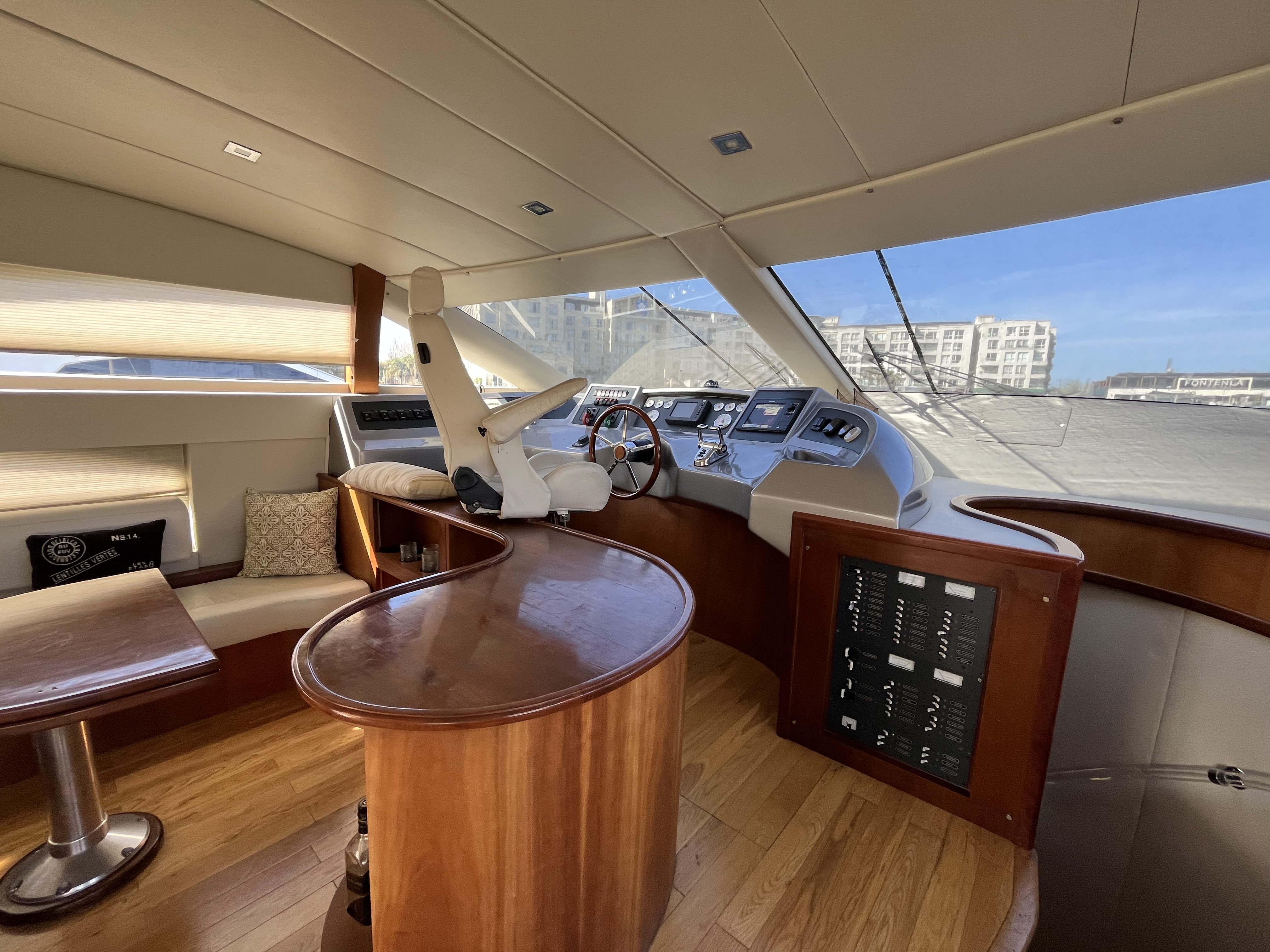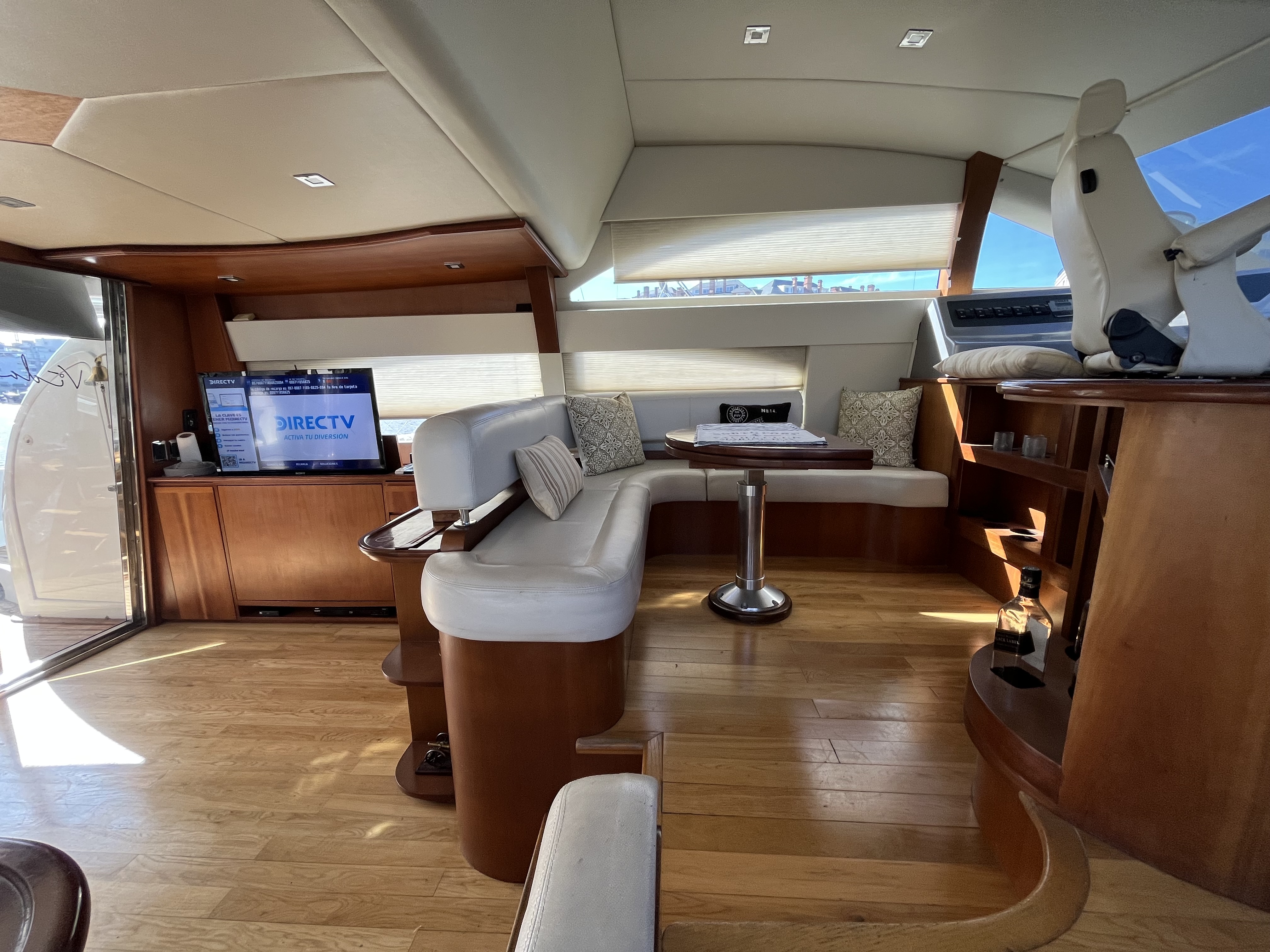 Cómodo cockpit con amplia área de asientos y acceso al flybridge.