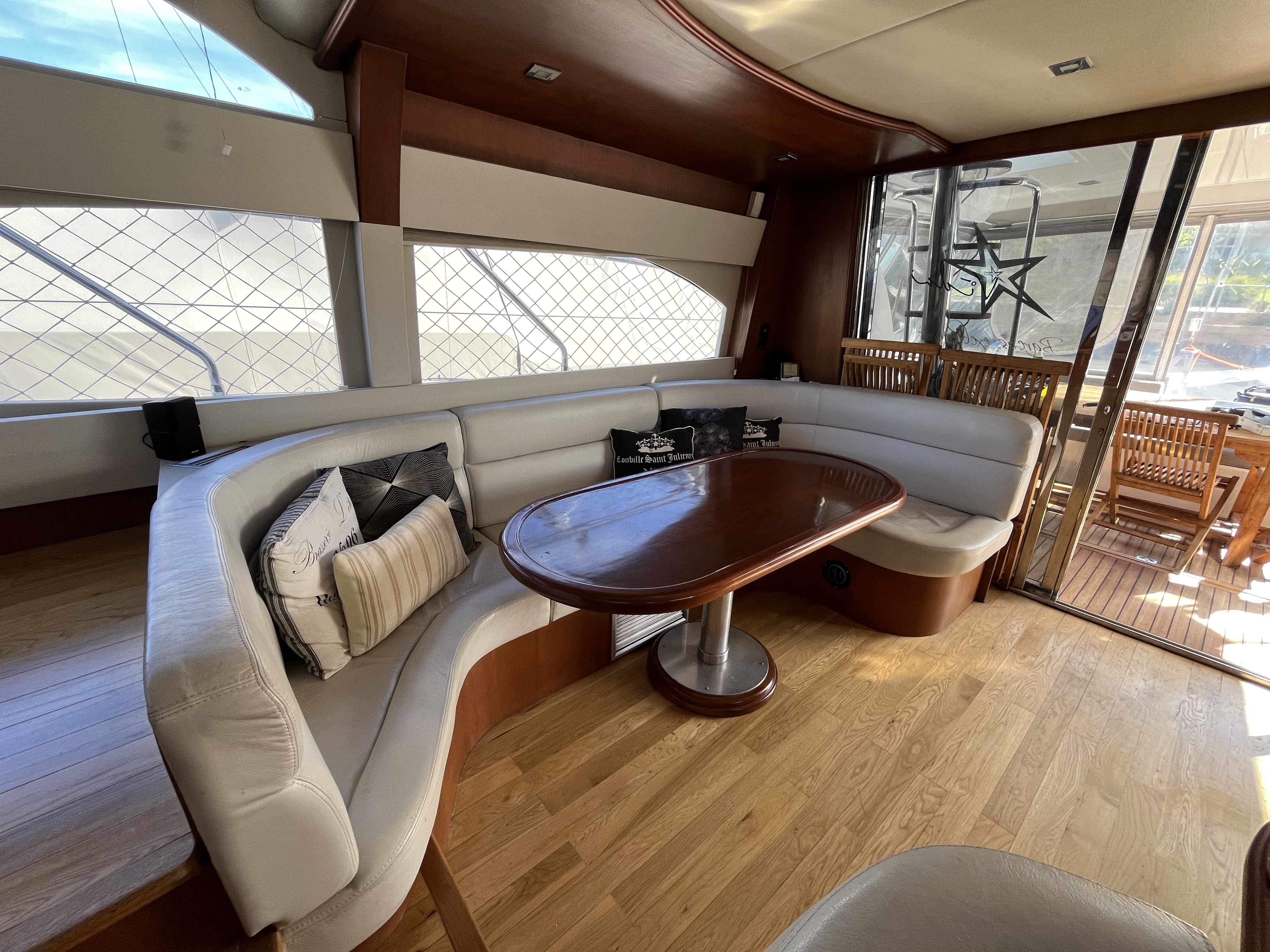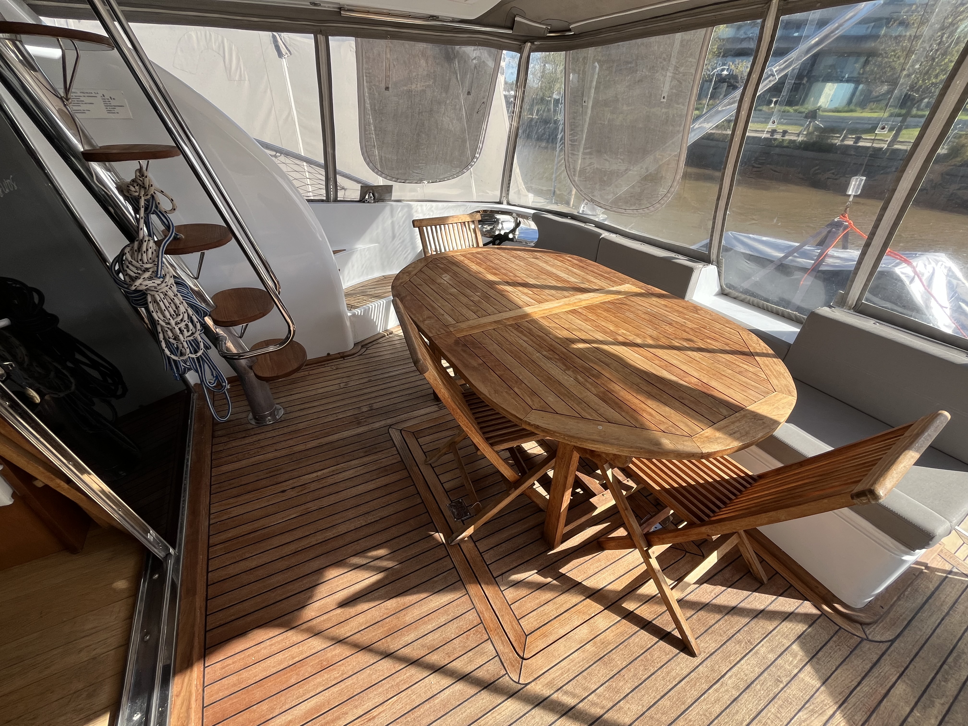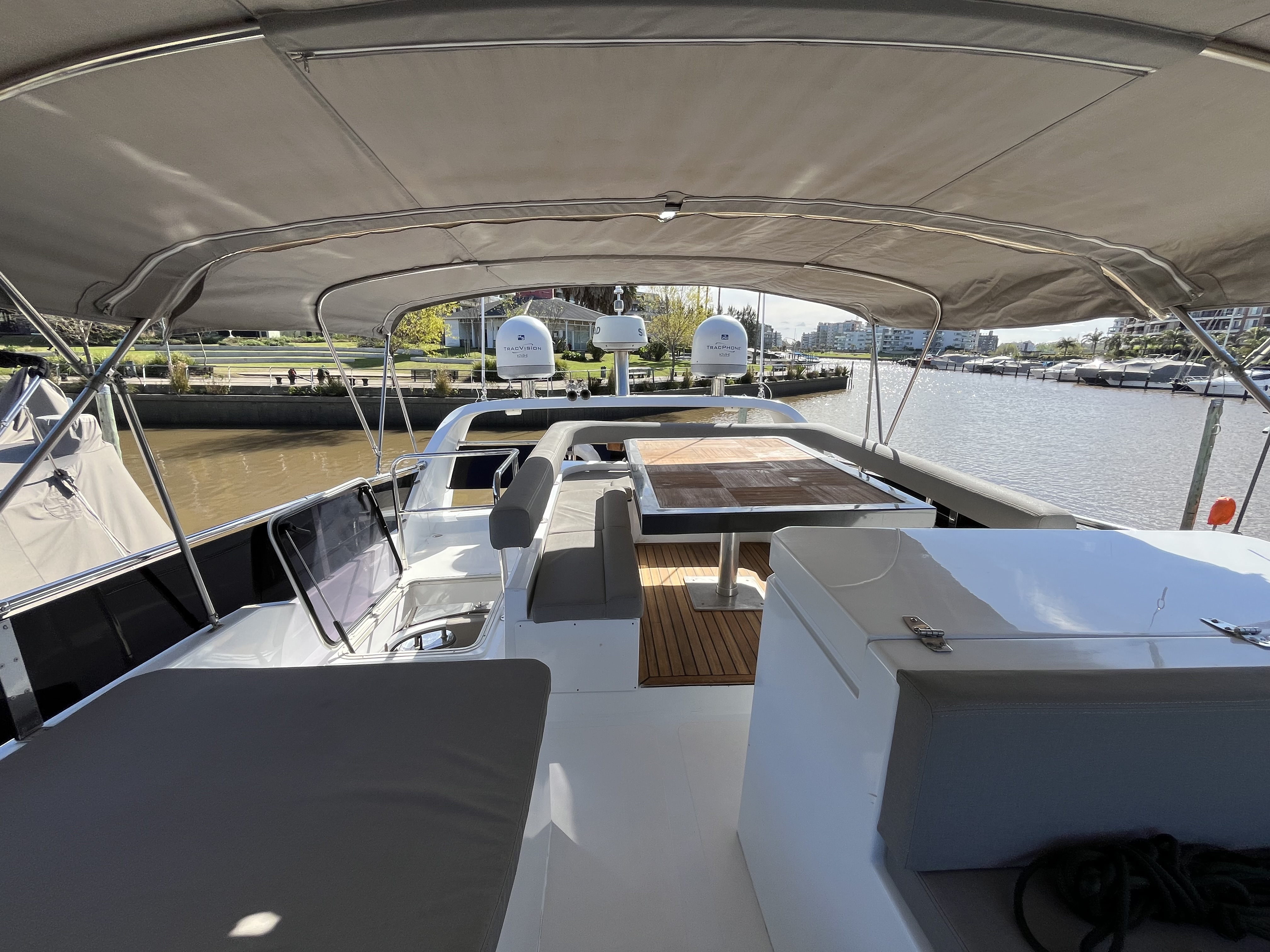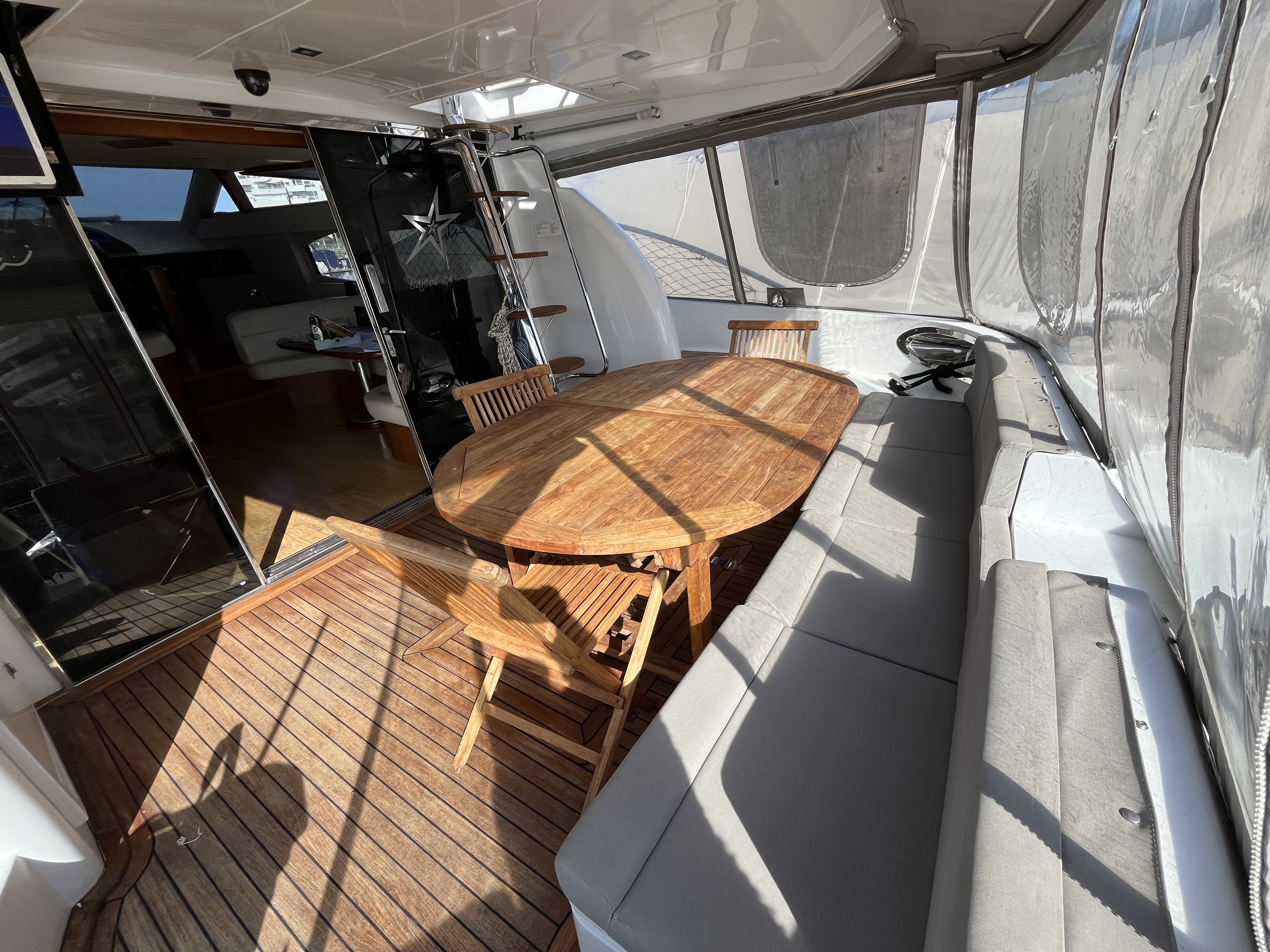 Cómodo cockpit con amplia área de asientos y acceso al flybridge.