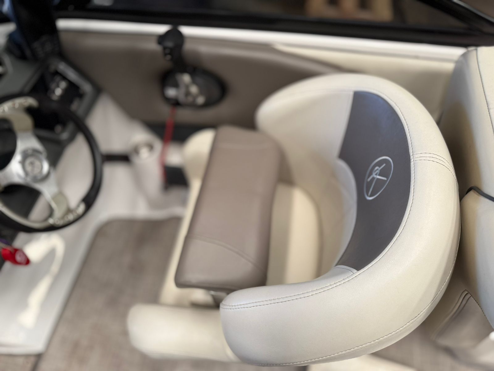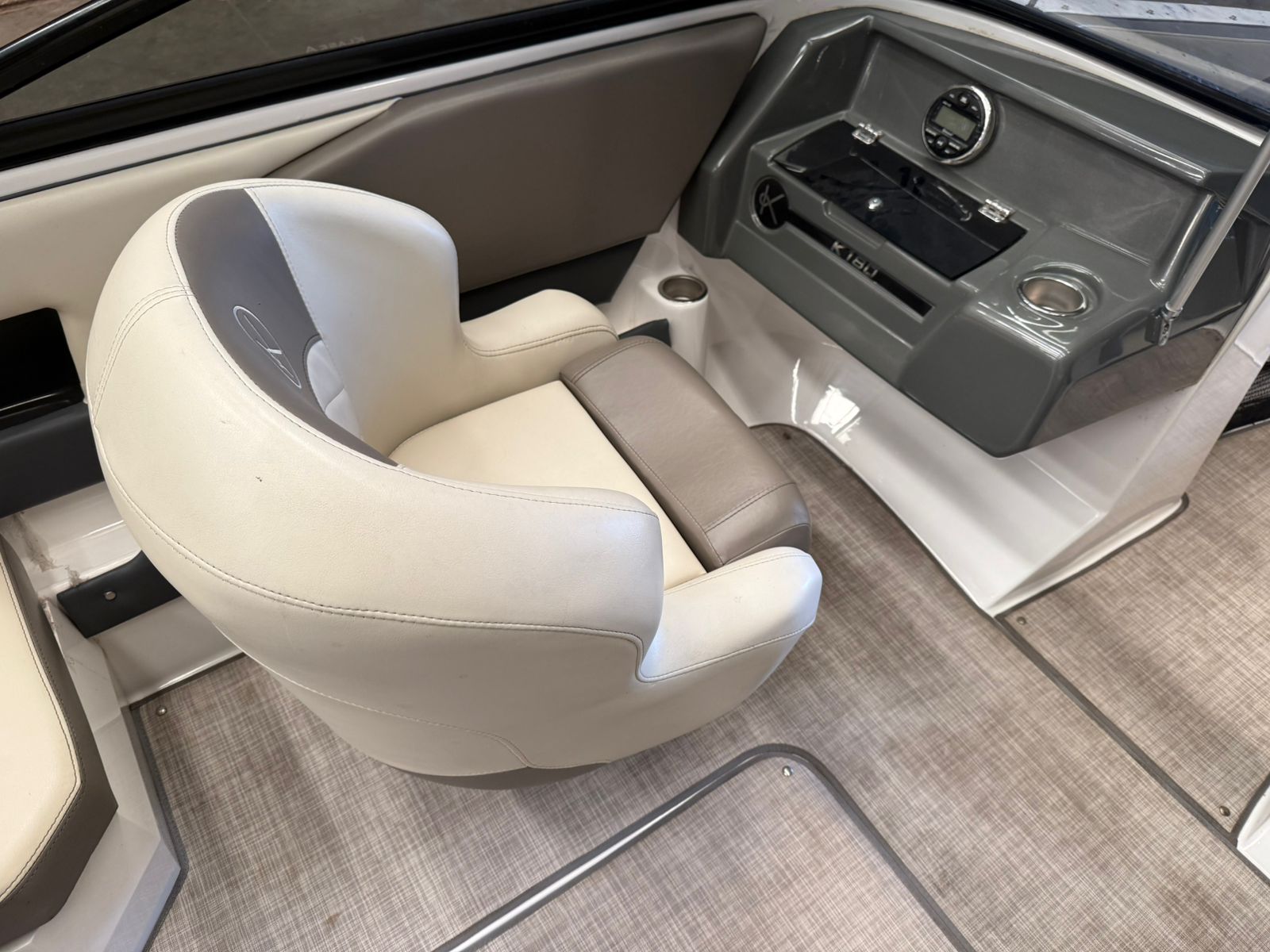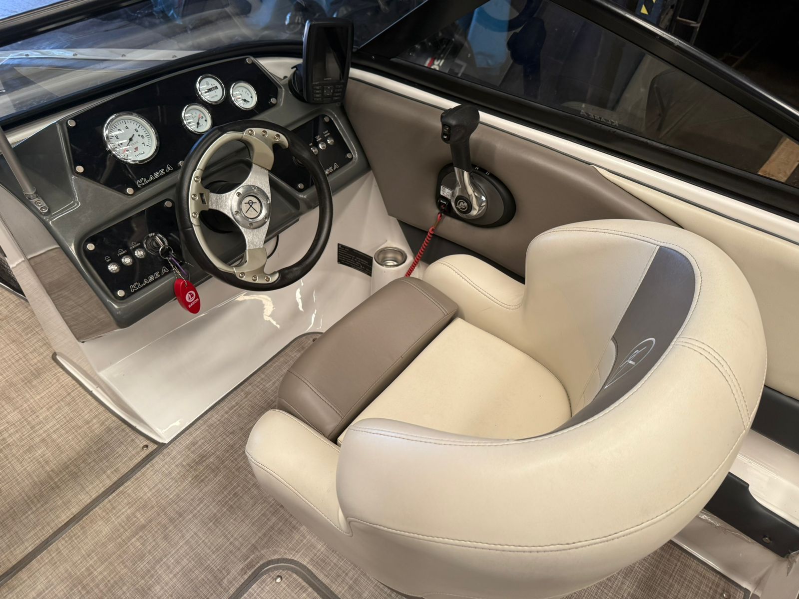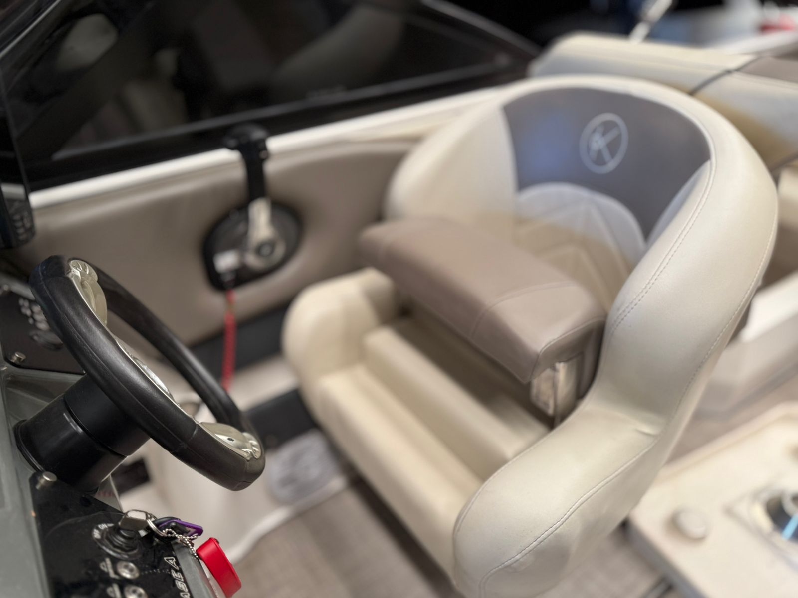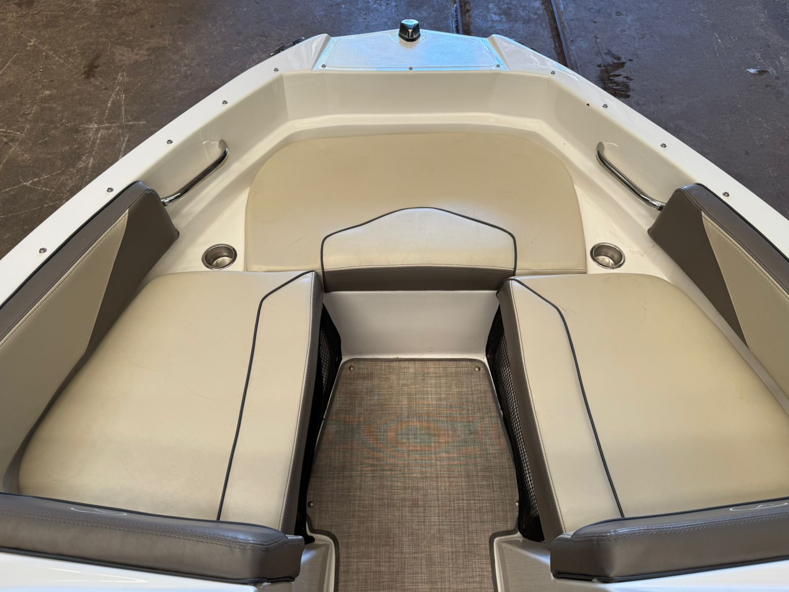 La Klase A K180 es una lancha open que presenta una disposición muy funcional, pensada para el uso recreativo y familiar, priorizando la circulación a bordo, el confort y la versatilidad. En la proa dispone asientos en U, cómodo para dos o tres personas, ideal para descanso, sociabilización o tomar sol, con espacio libre que facilita el movimiento y el acceso. A estribor, ofrece una consola con buena visibilidad del instrumental, acompañado por un asiento individual para el timonel. En el cockpit central se desarrolla el área social principal, con asientos enfrentados que permiten acomodar a varios pasajeros, generando un espacio amplio y bien integrado para compartir la navegación y otra butaca del acompañante. Hacia popa, la embarcación cuenta con una plataforma de baño baja a cada lado del motor, de fácil acceso al agua, ideal para actividades recreativas. Escalera de baño en popa. Toda la lancha tiene amplios espacios de guardado bajo los asientos, pensados para alojar elementos de seguridad y equipamiento, manteniendo la cubierta ordenada.